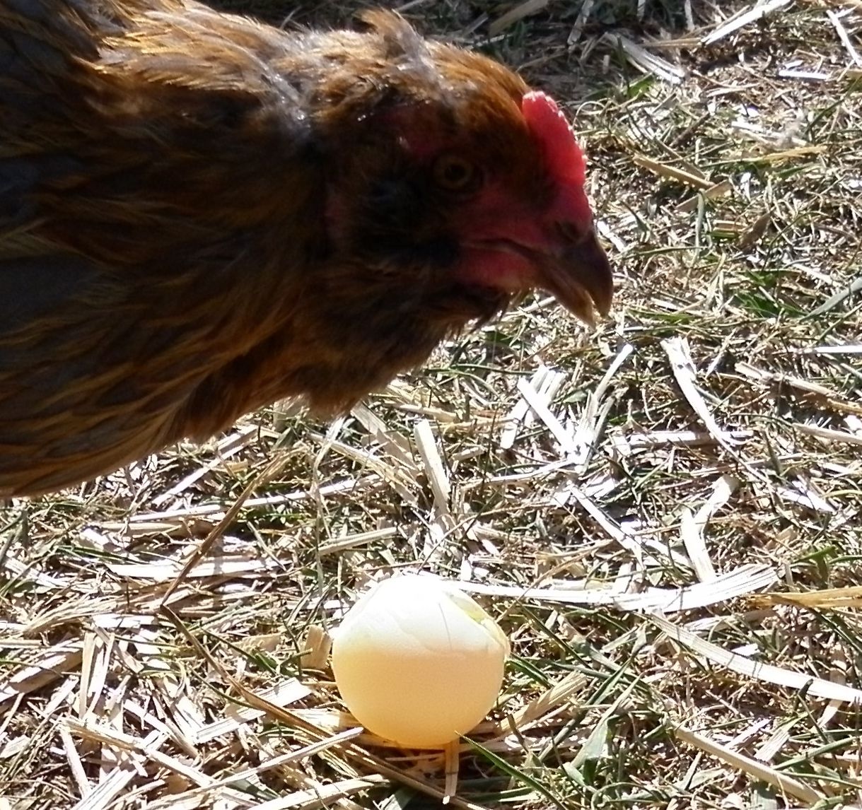 Leave em be for now. They were due Friday? Maybe tomorrow think about it again.Roger has two eggs left. One of hers was a "helper" egg that I removed. I held both of the other two eggs to the light and they are dark inside. But are we not getting past the deadline real soon for them to hatch? But big broody has one hatching right now so I am confused. I read one comment on the broody thread that said after 24 hours the eggs should be removed so the broody will focus on her chicks. Guess mine proved that wrong. I got eggs hatching three days apart