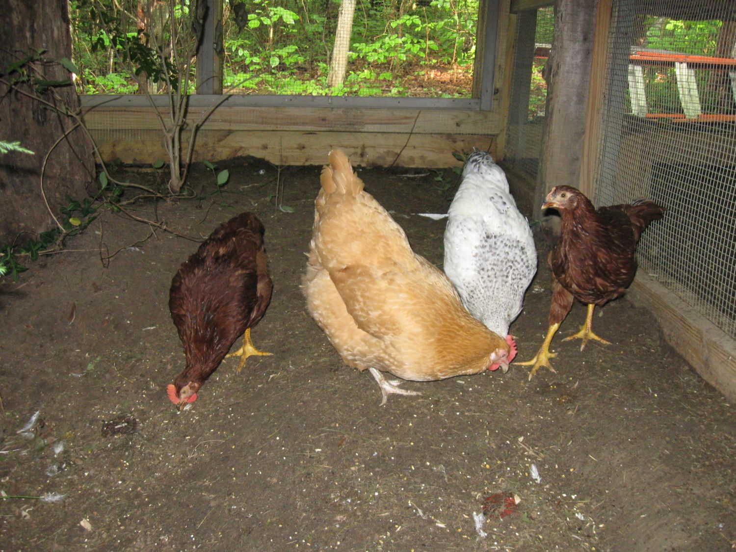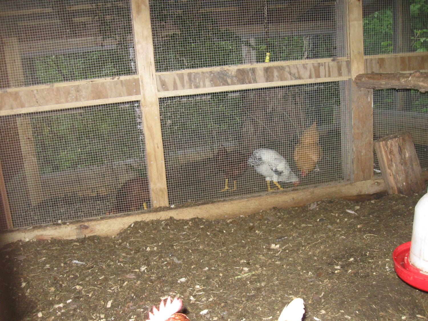 I also didn't realize during one of my excursions to check the chickens that I didn't firmly latch the house door. Chester slipped out, but he came straight to me. I was just standing in front of one of the pens, when I felt a cold wet nose in my palm. .....Wow..... what a good dog. he could have gone in any direction............