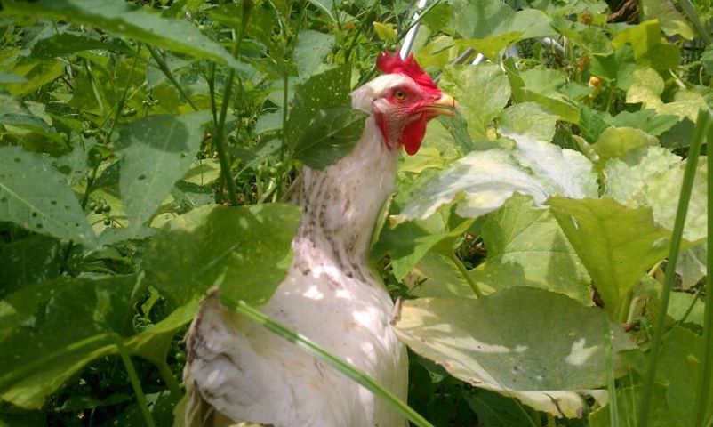 My Chicken Jungle. This is from the townhouse in the garden bed coop. Her name is Ruthie I adopted her this spring. She doesn't lay and basically I accept that she is a freeloader because she is pretty sweet and she came from a BYC friend.