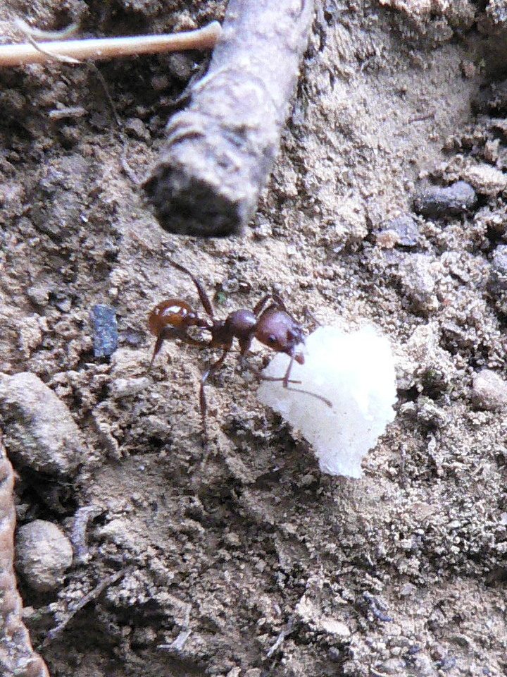 we had an awesome hike and a fabulous picnic! one of the hard boiled eggs got mashed up in the basket, so we threw it into the woods near where we were sitting. then we watched a bird come back time and again to fill up and fly off. must have babies to feed... and we saw a couple of ants carrying off bits of whites