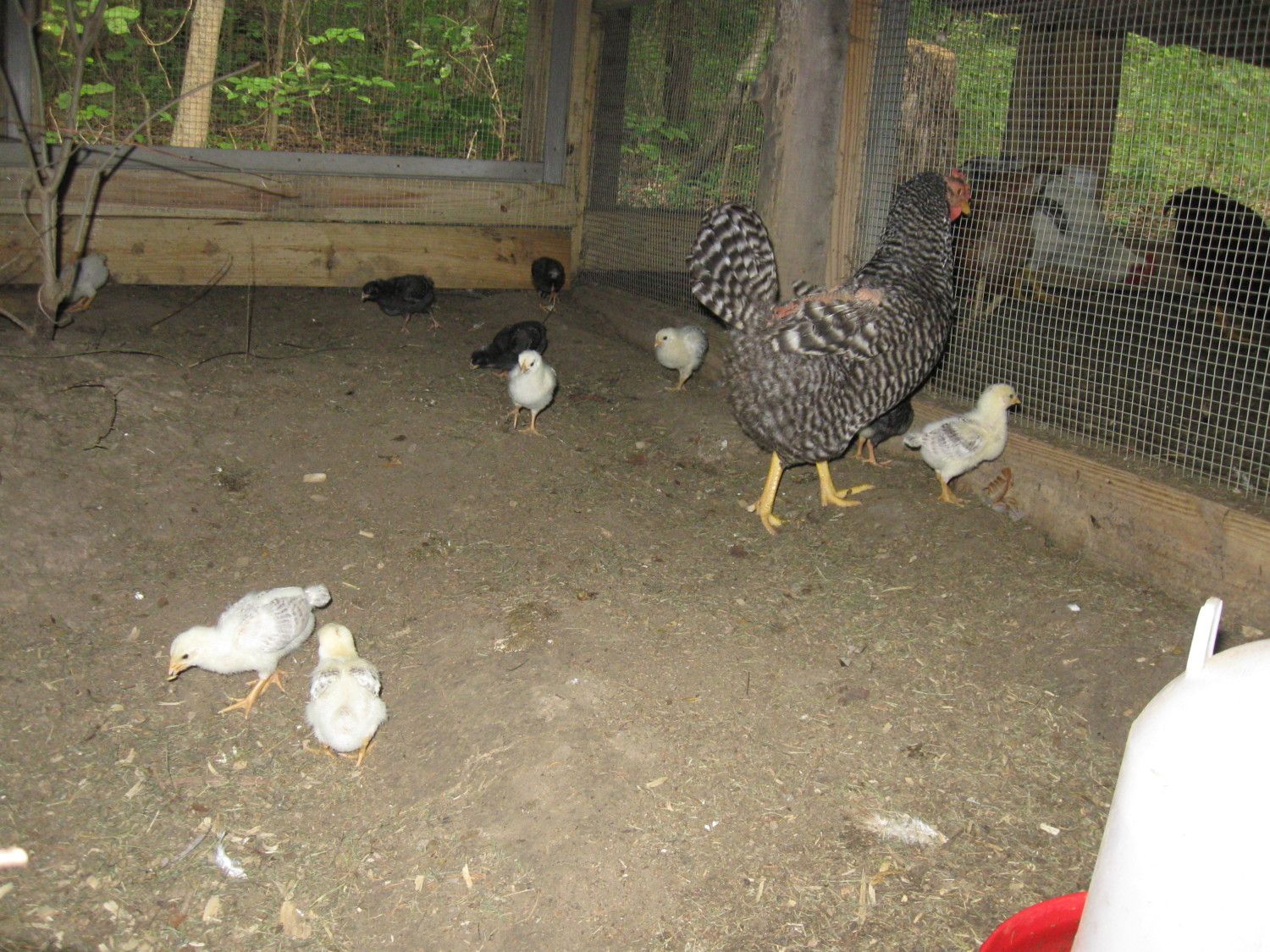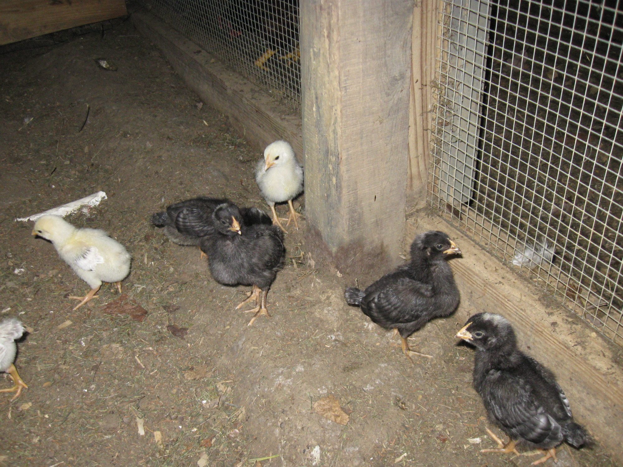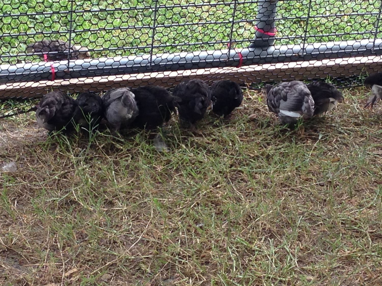These are 10 of the 20 black/blue copper Marans I got at auction. They seem to be wondering how the one got out!