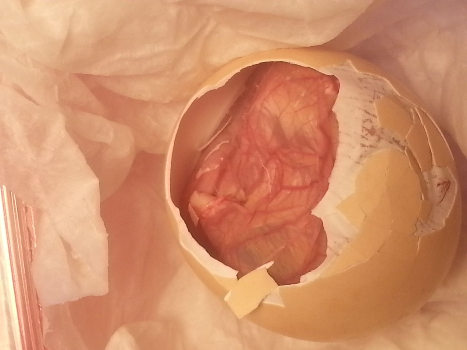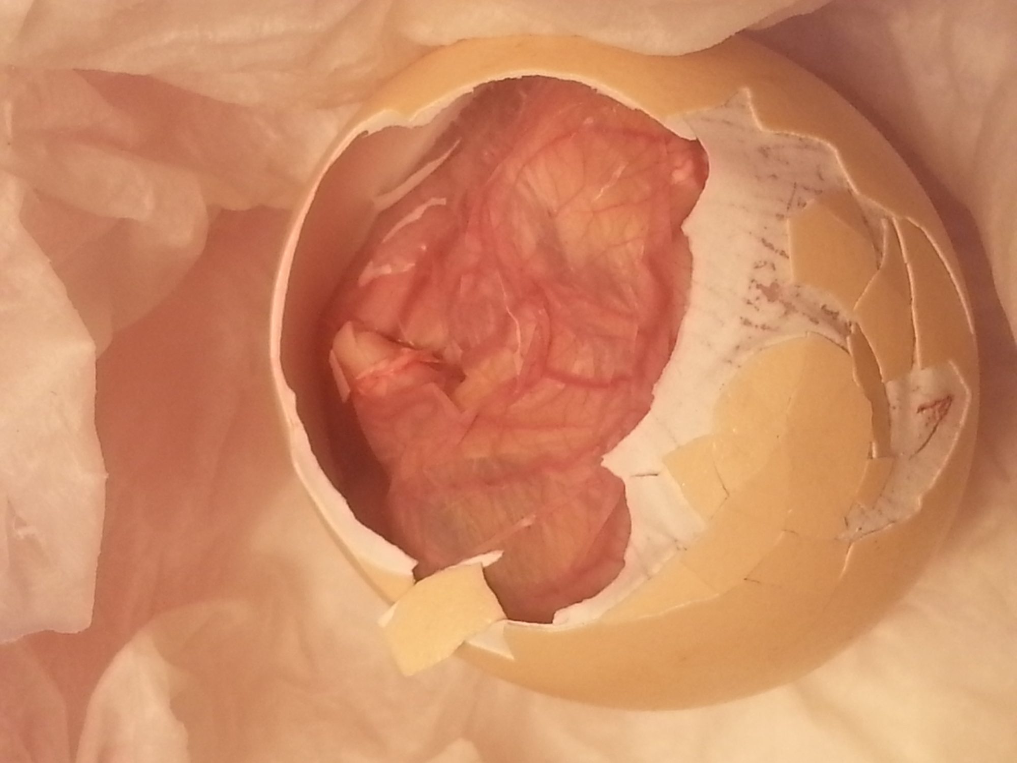 I am still keeping the membrane moist and wrapped up in a damp paper towel. I have been checking on it about every hour or two, but try not to mess too much, and just let it do its thing! Not sure what to do during the night.... I guess I will get up a couple of times to check on it and hope that it is out by morning!