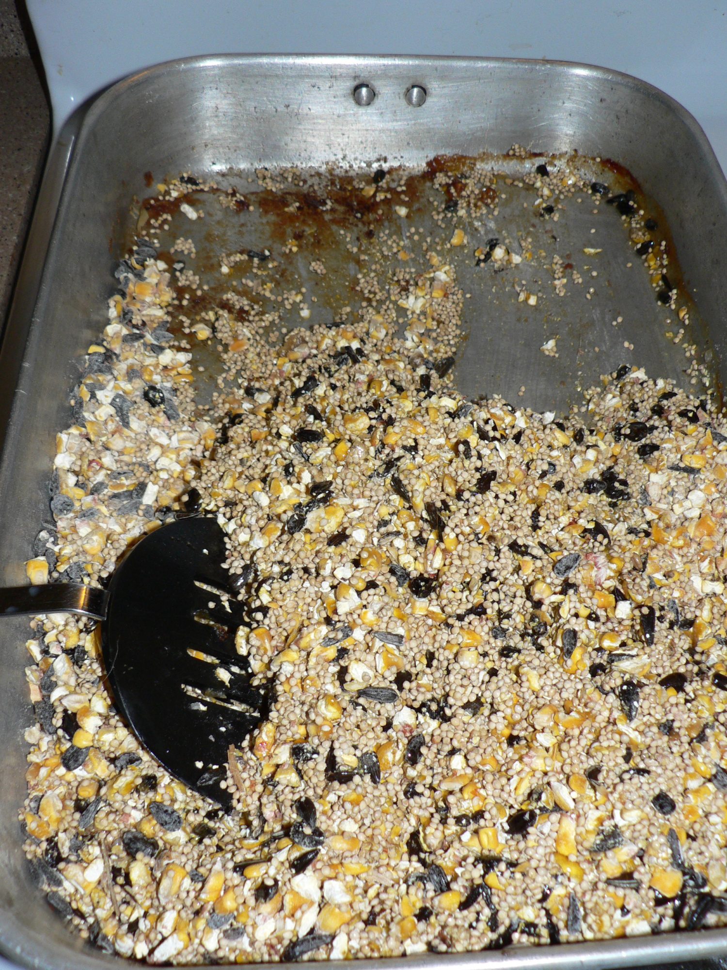I heated it to liquid, added a couple of tablespoons of honey and poured in the BOSS, cracked corn and millet...