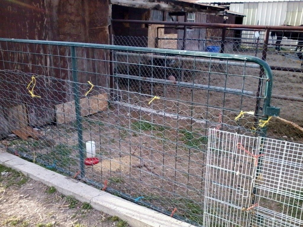 I have three pullets and one cockerel (9 weeks old). I also have four younger chicks (2-3 weeks old). Their chicken coop is still in construction, so it is very small. It is only 9'x2' and is separated in half so the bigger chicks don't hurt the smaller ones. It is a blocked off section in my horse's tack shed, but soon the horse stuff will be moved so they will get the whole shed. It has a red light on at the moment for the smaller chicks.