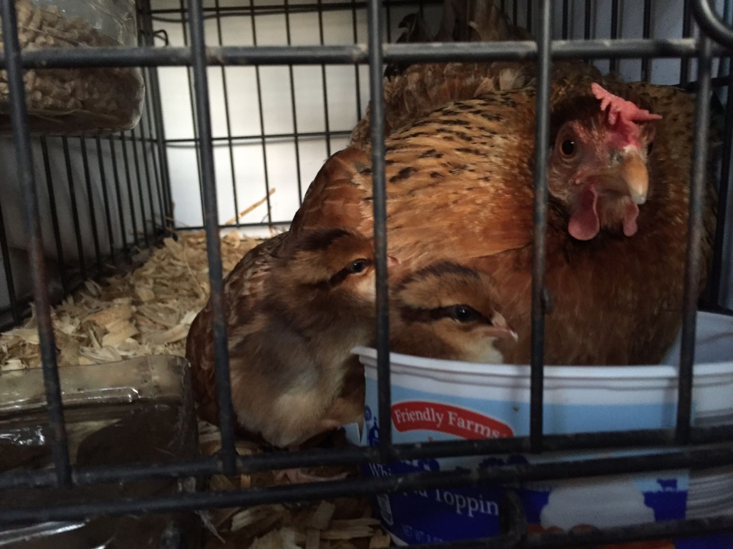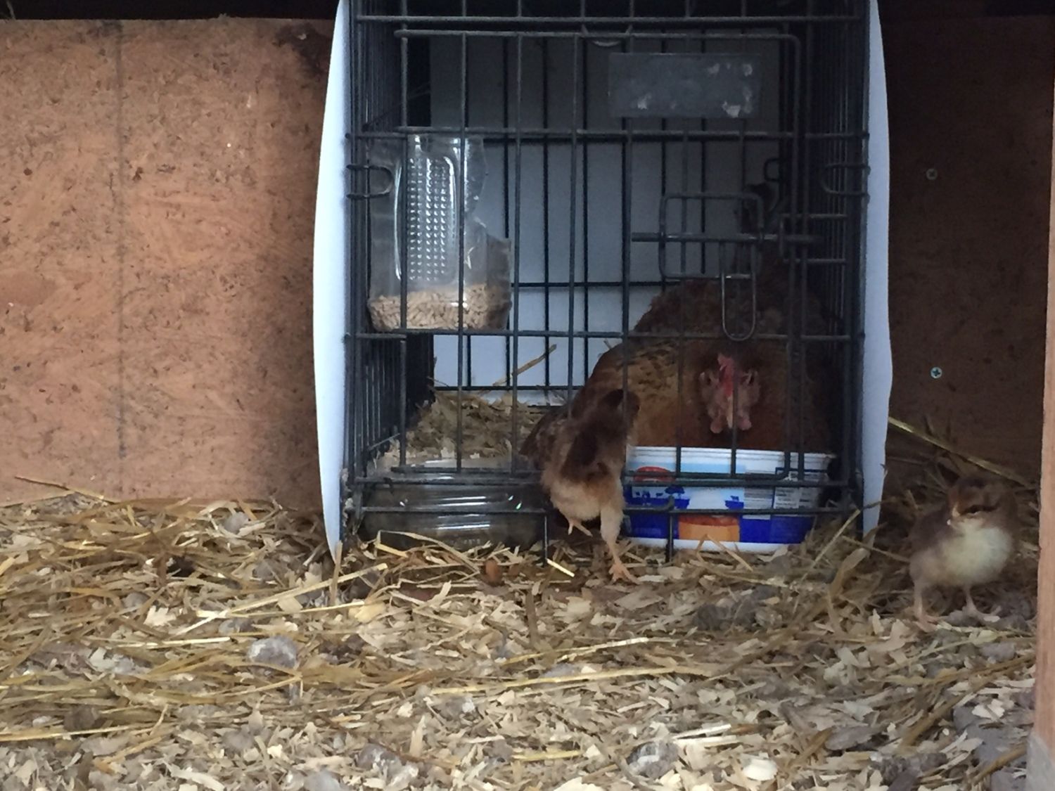 Update: I got three day-old speckled sussex chicks last night and set them under li'l Miss Broody. This morning when I checked on her, I could hear them peeping around, so I gently lifted her enough to see their feet. A couple kind of fell out (3 inches or so, and slowly). Super cute! So...she's doing great as a mom thus far. So great that she pecked me like mad when I tried to access them. Hahaha...