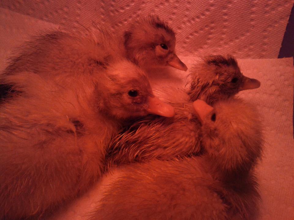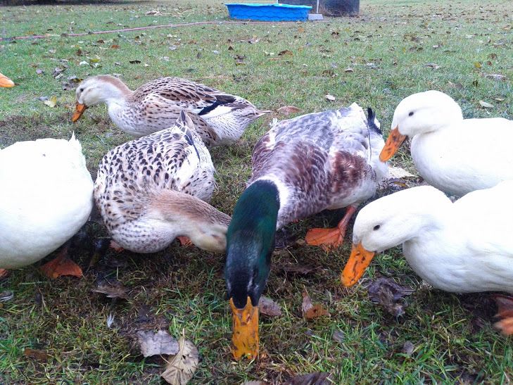 Here are my ducks. We've only got the 3 Silver Appleyards left. A drake (Barney and two hens). The last pic is of four ducklings that just hatched today. We had a total of six but those four were the first ones out. We got a total of 3 Silver and 3 White ducklings. All Appleyards. We're getting 10 more cayugas in a few weeks. I love our ducks!