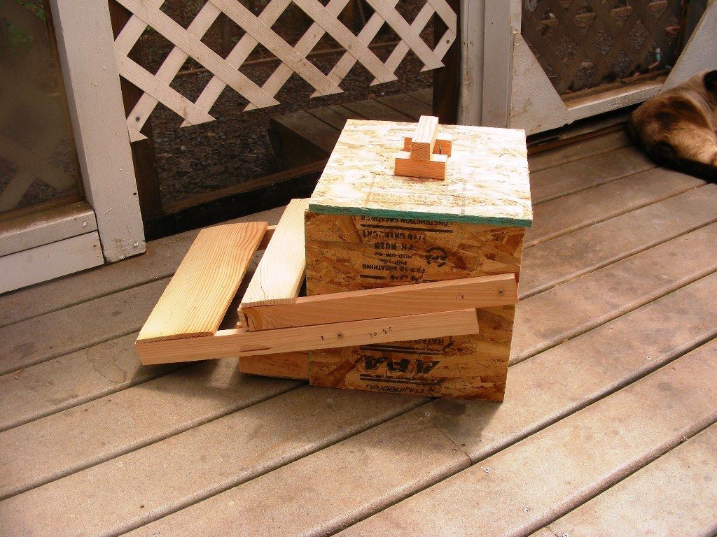 My hubby made a chicken feeder made from wood last year. It's a lever feeder, chickens stand on the lever to get to the feed. Must keep it out of the rain in the winter if it rains other wise it will and not close when they step off the lever. This was made because we had lots of wild birds eating the chicken feed. This has stopped and we are not feeding the neighborhood wild birds any more. We had lots of the little tiny birds, sparrow and scrub jays, robins and such. Also had the squirrels doing the same thing, they were also making bedding out of our straw during late summer. No birds get to the feed now unless the lever is wet and gets stuck. Haven't seen any birds in awhile. Chickens used to throw the feed out of their other container so there is hardly any waste in this one.