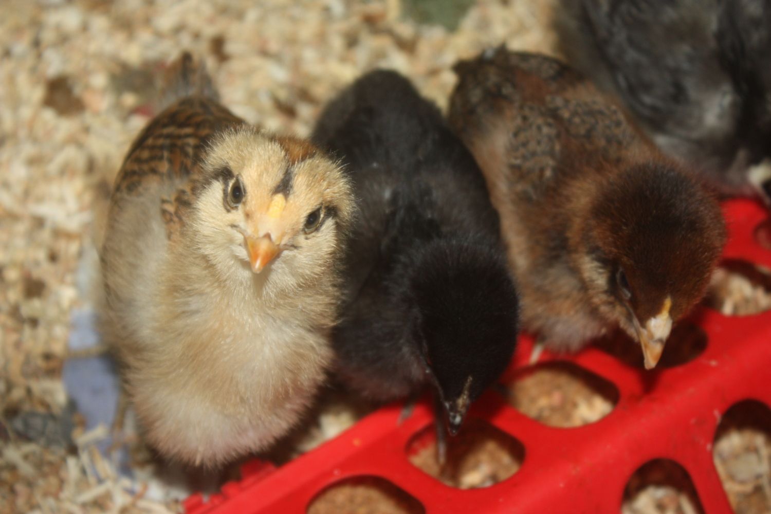 our grand daughter was given the class chicks at the end of the school & of course was bringing them to us ....lol not knowing what breed they we we are now thrilled to have 4 EE 3 hens & a roo
