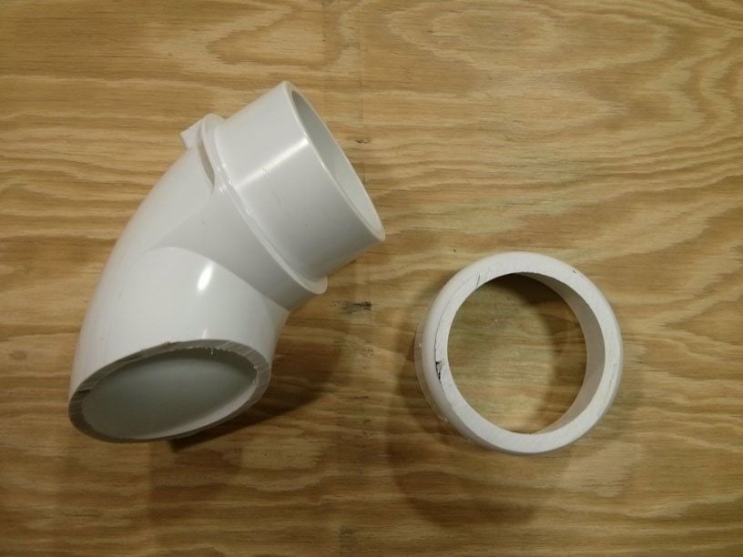 This is the street elbow with a hub end (the big part) and a spigot end (the narrower part with the flange). This method won't work with a plain 90-degree street elbow because the parts won't fit into one another at the end (you'll see). I had to check online before I purchased it because not all Home Depot's carry them. Here's a link to the product: http://www.homedepot.com/p/NIBCO-3-...Street-Elbow-C48072HD3/100347226#.UnBRP3BwpLc