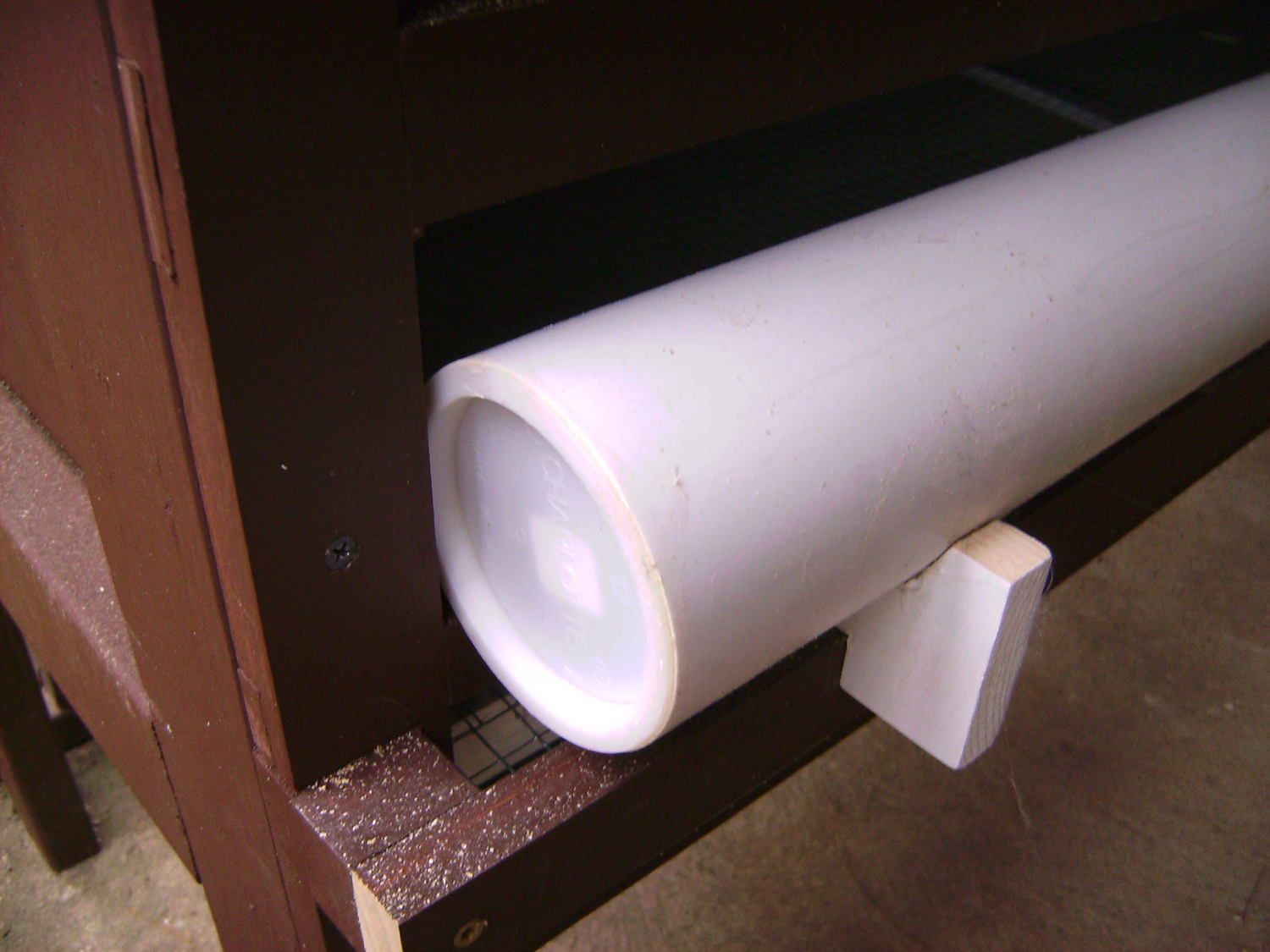 Thanks so much for posting additional pictures! Those stands for the pvc feeders are made of wood (painted)? Did you just glue them? What lids did you use for the end of your pvc feeders the ones I get from Home Depot seems to be thicker pipes with rubber capa you can buy separate. What's the measurement of the slope on your floor so the eggs will roll to the front? What are you using for your water system? Also, how will the milk jugs work for the dust baths? Pardon the endless questions just want to learn as much as I can!