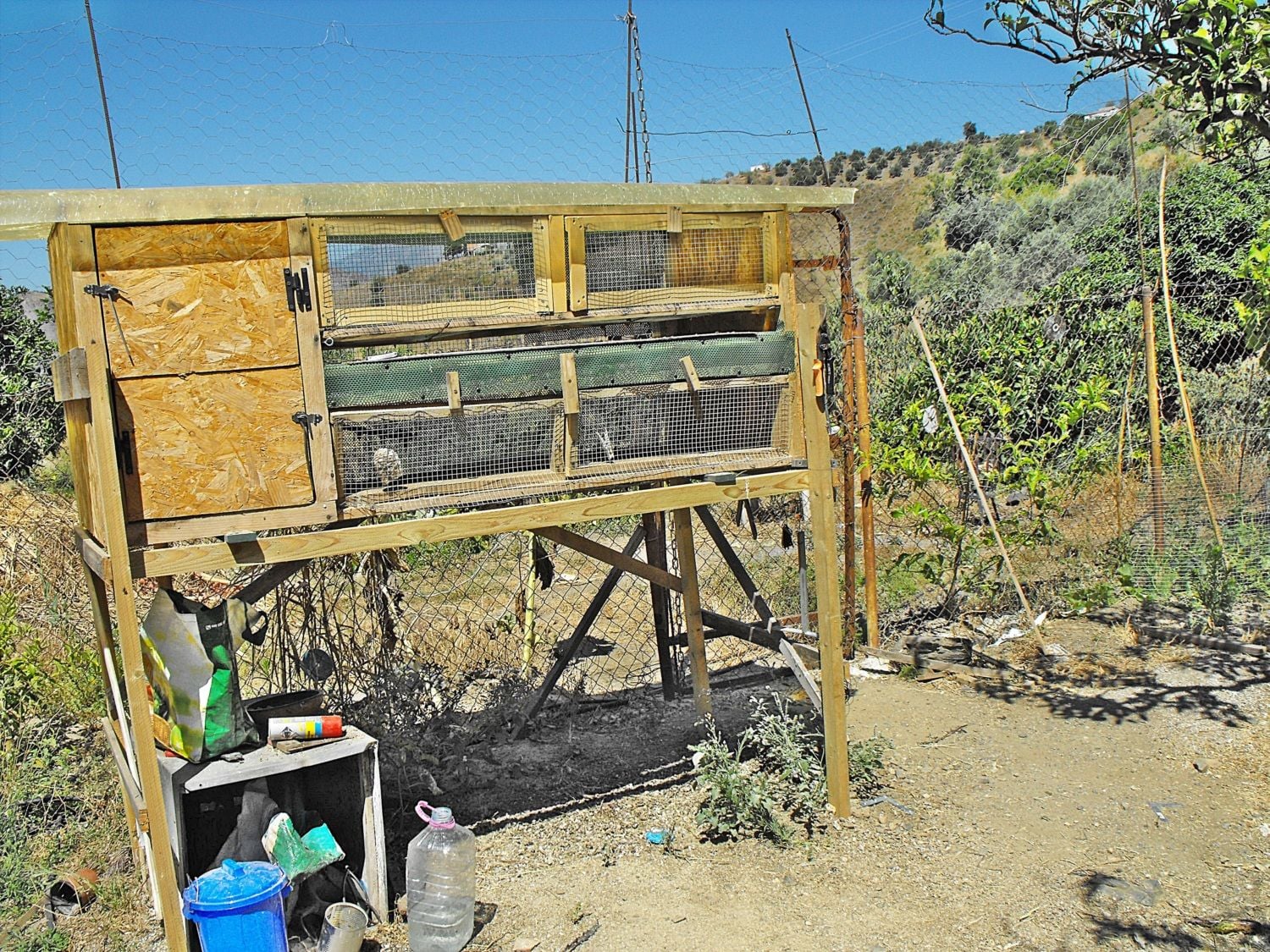 Thanks so much for posting additional pictures! Those stands for the pvc feeders are made of wood (painted)? Did you just glue them? What lids did you use for the end of your pvc feeders the ones I get from Home Depot seems to be thicker pipes with rubber capa you can buy separate. What's the measurement of the slope on your floor so the eggs will roll to the front? What are you using for your water system? Also, how will the milk jugs work for the dust baths?
