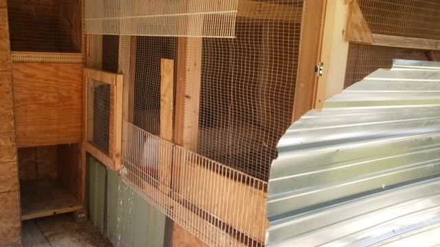 *****One thing I did I haven't seen on anyone else's cage, Is I added a vinyl window screen panel inside the door opening. I made my main door a drop down door with chains to hold it in place 3/4 open and the window screen keeps the birds from flying out while I change the water jug. I want to change that soon. I did make a feeder via Pvc pipe through the roof. That is a GREAT idea, allows a week of food to be dispensed automatically via a 1 gallon open top round feeder. I used a 4inch pipe and keep a big orange funnel on top of the cage.