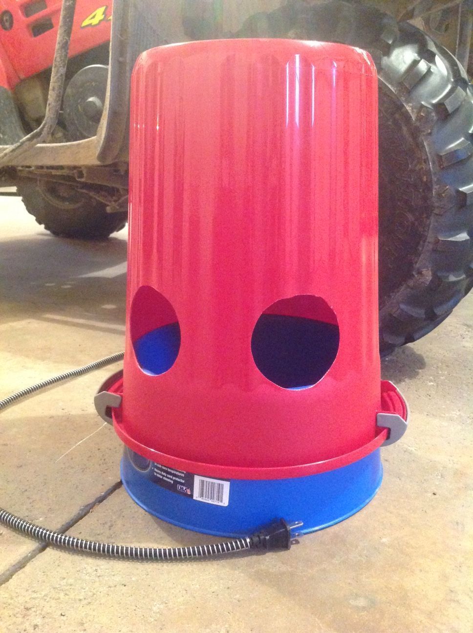 So how do YOU give your ducks water in the winter? I've been trying to figure out how to give my call ducks drinking water that is deep enough for them to wash their bills but still keep them from getting in it to swim and make a frozen mess all over the barn. This is the best I can come up with so far, sadly. Heated dog bowl with a trash can inverted. There's gotta be a better way.