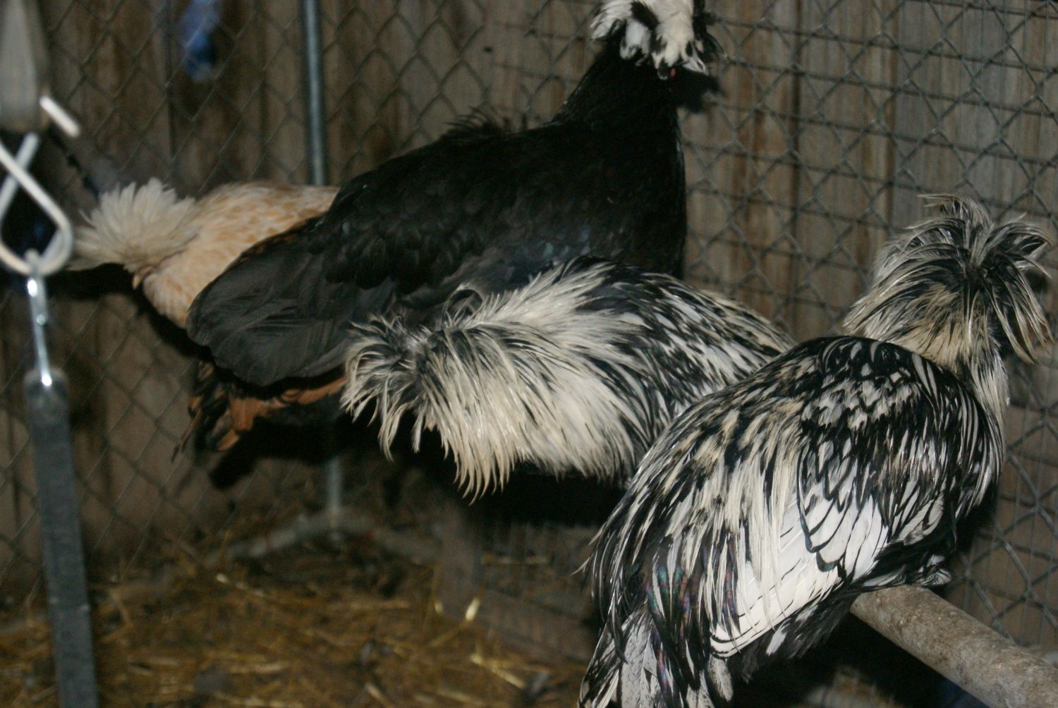 omg i didnt know that is how you sex polish chicks >< but to bad mine are past the fuzzy top stage >< now i have to wait and watch there top feathers to figure it out.. and i'm thinkgi got more roosters knowing my luck >< everytime i get babies at least 2 of them turn out to be roosters its a consparacy but i dont want to get rid of any of the roosters cause i love roosters more the hens to be honest there fun but on with the show here is my little hurd of Polish's.. the only two i dont know if they are hens or roosters are the pic of the babies int he basket but now i can look at the tops and figure it out but i'mt hinking they both are roosters ><
