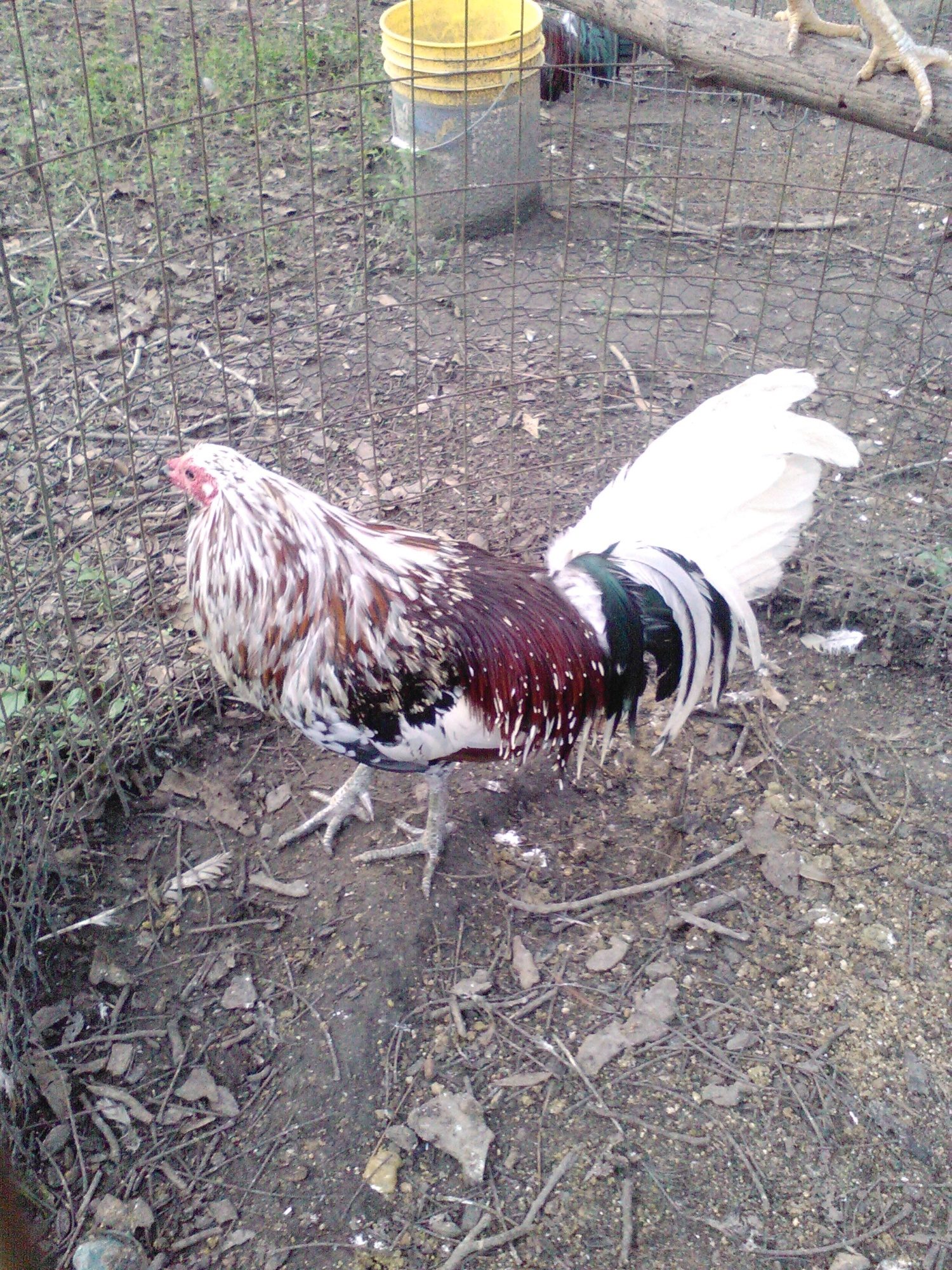 Right now I've only got three American Gamefowl (I believe that correctly they would be called American Pit Games, as they are not from stock bred to the SOP), one grey ex-cockfighting bird with green legs (he's dubbed so not sure of comb type), one wheaten hen with blue legs and peacomb, and one BBRed hen with green legs and peacomb. Beautiful birds, no idea what strains they are though, another thing I'd like to find out. Once I have a proper coop built for them I hope to introduce more hens to the pen for hobby breeding with my grey male. I produced one stag from the grey/wheaten pair this spring, but it didn't make it more than couple months. Shame, it was pretty. I've always found myself enamored with oriental gamefowl, but ever since I aqcuired my three birds - the cock as a rescue, the wheaten hen as a companion for the cock, and the other hen found in someone's yard and given to me via a friend - I've found myself falling in love with the color, type, and personality of the birds, nevermind that their gameness makes keeping them rather complicated at times! Especially with the kind of attitude my wheaten hen has. She's just as game as the cock is. The BBRed hen not so much, but then again she doesn't lay 5 eggs a week like the Wheaten does either!