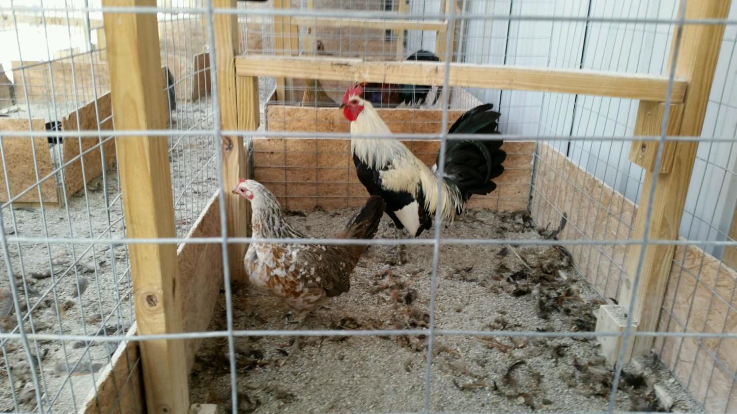 Flypen, she looks familiar. Did we talk about this before? She looks mottled to me, white tips on the feathers? If so, she should be mo/mo. Is that male related to her? If he is not carrying mo, then none of her chicks should show mottling. If he is carrying mo, then half of her chicks should show mottling. Or, mate her back to one of her sons which should be carrying mo and then you will get half her chicks that should be mottled.