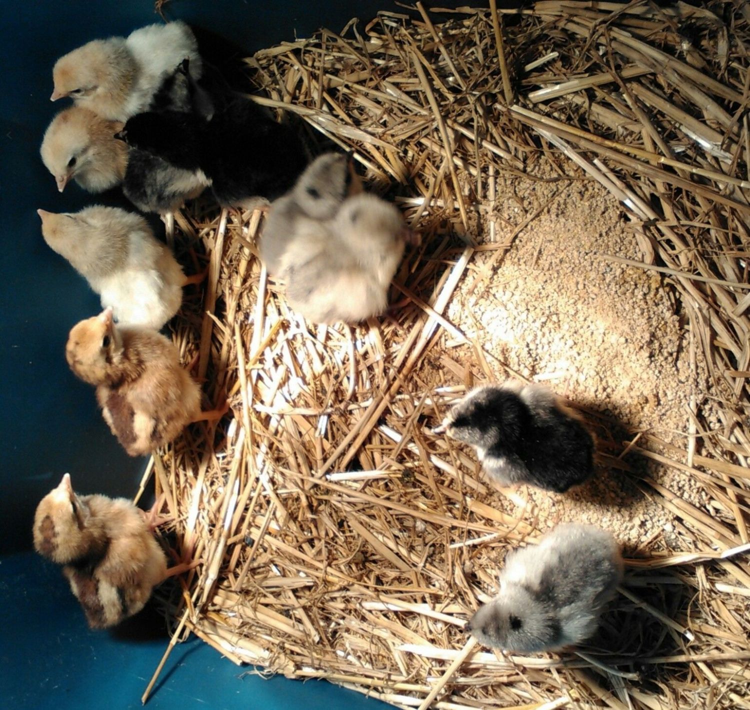 yep always did till they a few days old then it goes in a regular feeder. I like to get them scratching and moving soon instead of just pecking out a feeder. Make em work for it