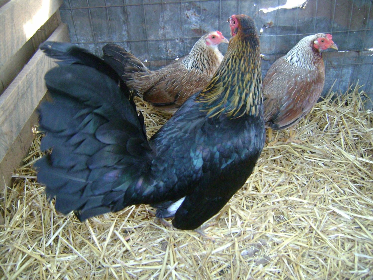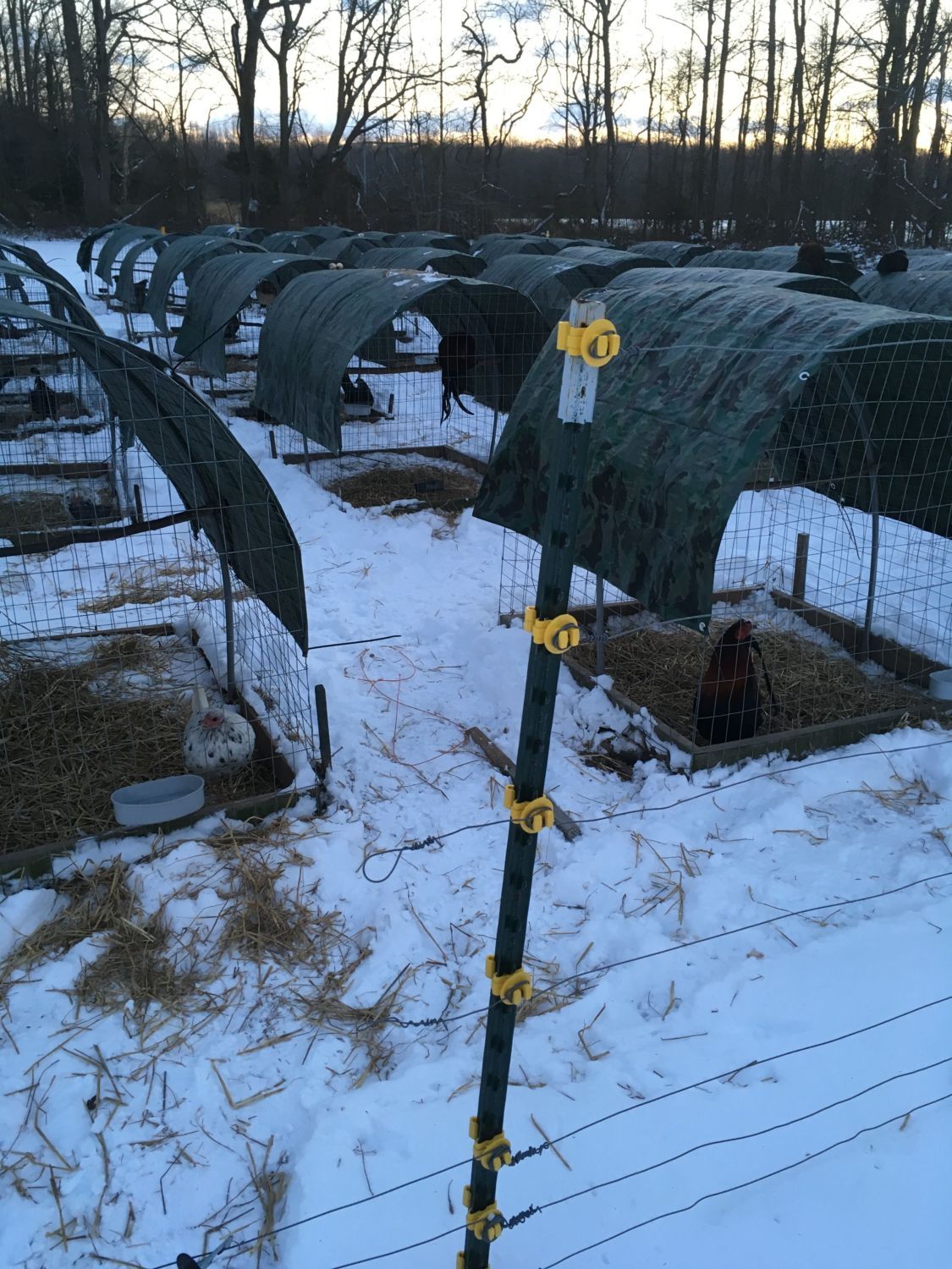 I went through and added straw to all 51 pens. One by one as soon as the straw hits the ground they come off the roost. I hate seeing them just sitting there. Good to get em moving. I throw scratch in the straw to get em moving a little more too.