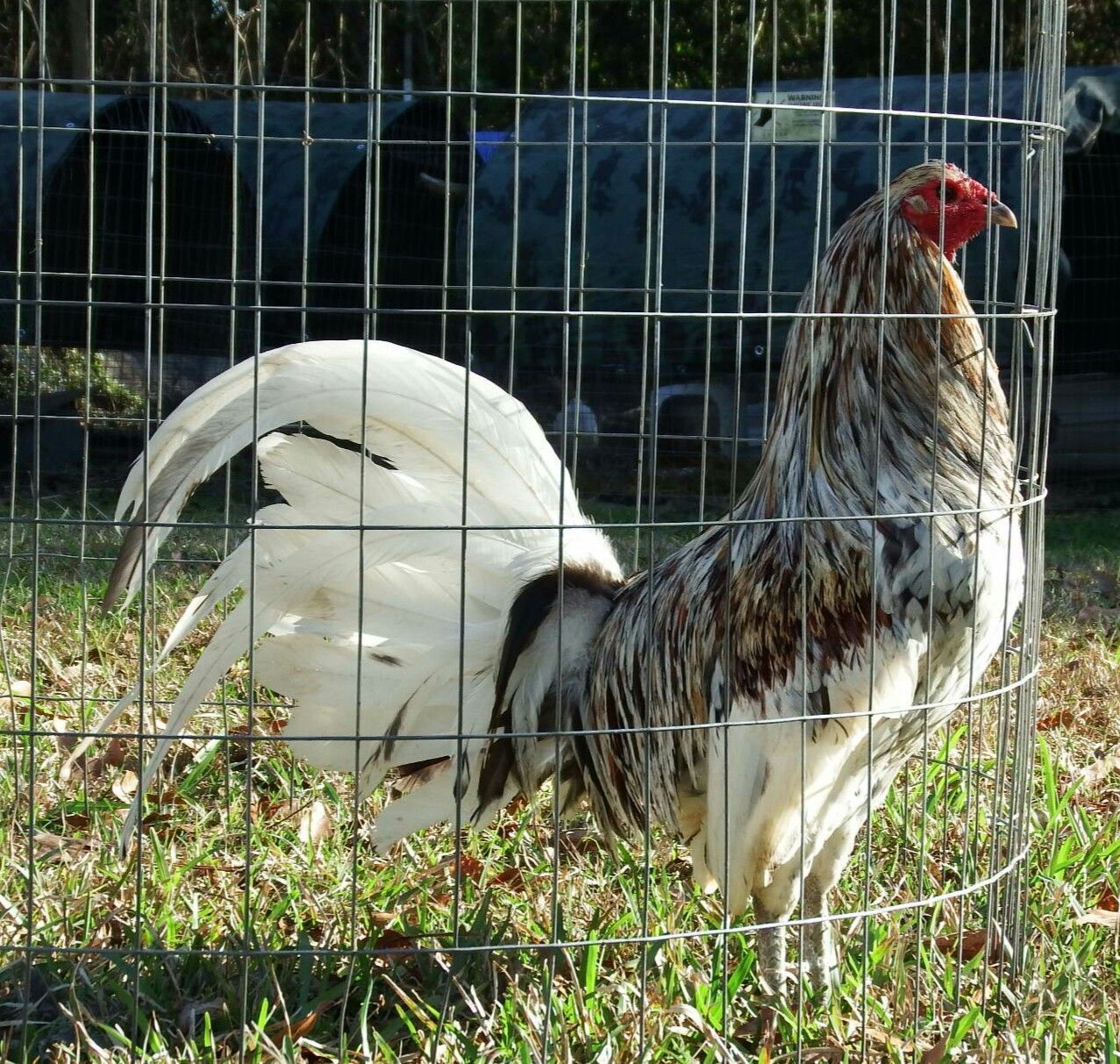 like a kitten. Cept he don't purr. Does let out a god awful scream when he sees a bird of prey. Thanks I have him paired with this hen.Beautiful bird there SDM! I am guessing he is pretty easy to handle since he is allowed to keep those spurs.