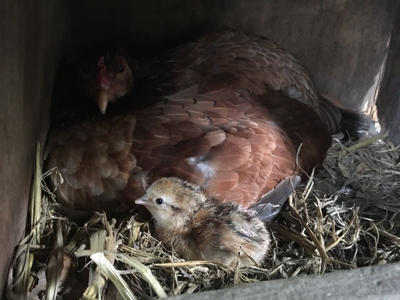 Thank you, the chicks are Bennett Blueface.Beautiful hen Flypen! She is in great condition even after setting. What is the speckled chick?