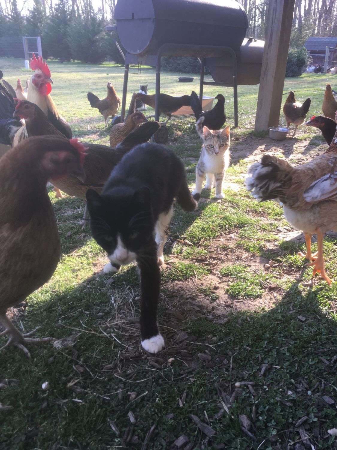 Second that. Our cats never bother the chicks, it is strays that I have to watch.I've watched the cats closely while I've had hens with chicks loose. I've had the cross hairs on a few cats while they were getting a little too close. Never had a problem with the cats that grew up around here just have to watch for any new ones that show up.