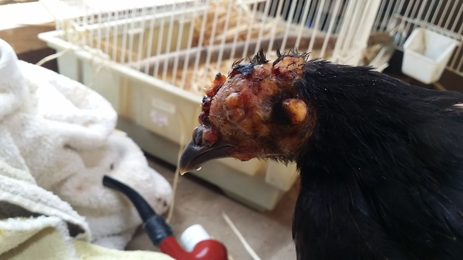 I have one I am probably going to loose to fowl pox, its the worse I have ever seen; eyes are close shut and ears are swollen... My blacks are very susceptible to getting it bad for some reason. I have this one separated and it hasn't eaten in 3-4 days.I just called the vet Dr. that my nephew got his greys from he said to treat the area with iodine and if there is any bumps in her mouth to put Listerine on that with a q-tip. This will stop any infection from getting in her throat. The q-tip will help remove any of the loose stuff also.