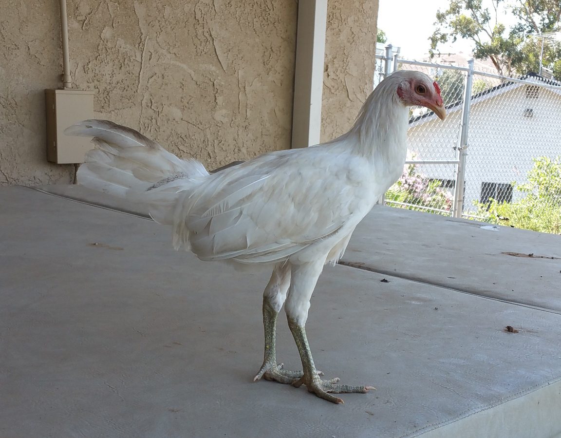 I have experimented crossing them with my American x Spanish Game crosses (White line). The results vary a lot but I am looking to produce pure white fowl that look like American Games, with the added genes for extra long legs. Preferably dark green/slate legs.