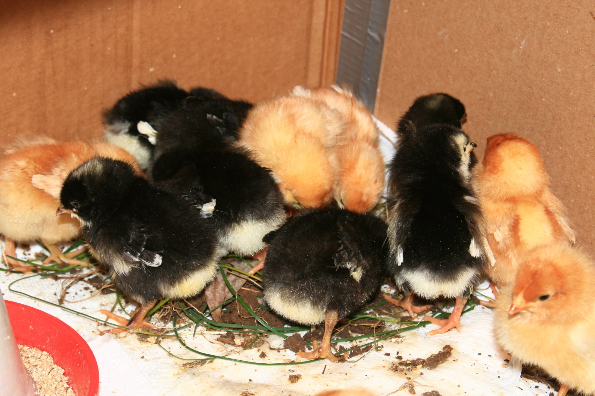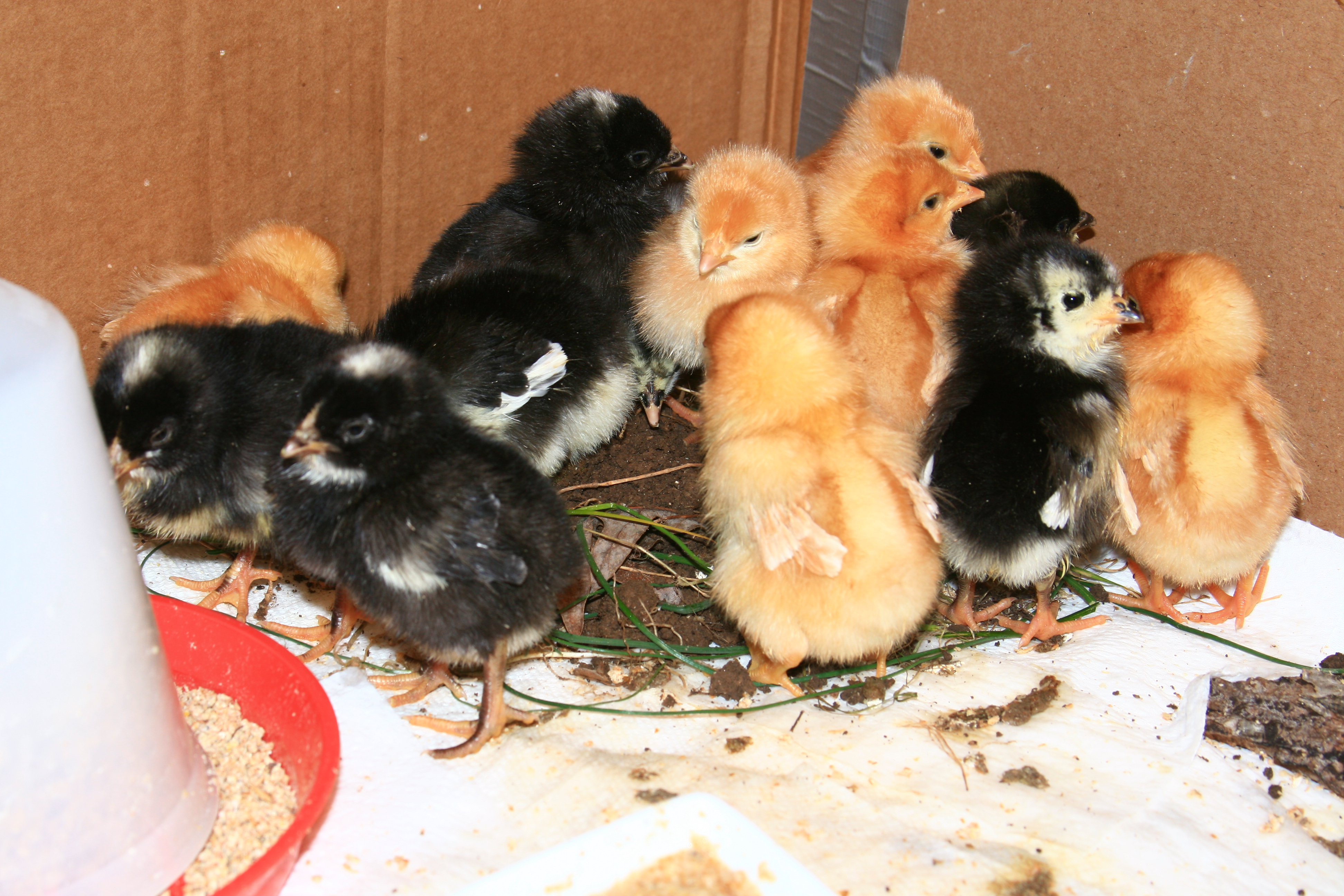 Yes, good fun! Unfortunately the closest thing to grass we have is shrubs & tinny little cacti. Both of which are covered in pine needles down to the roots. But we have plenty of light soil.Three day olds having a blast picking thru a pile of soil, grass, weeds, etc. Little foragers in training!![]()