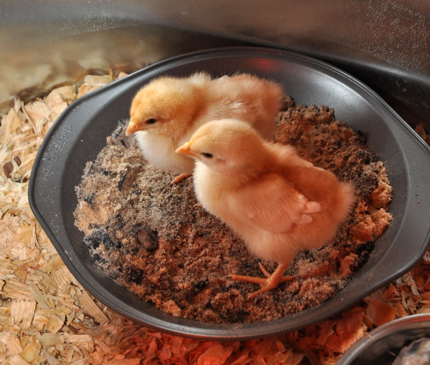 Thank you! When I put it in during the late afternoon they immediately jumped in and started pecking at it, pick out little bits to eat. It wasn't until the next morning when they started "bathing" in it. BTW, it's just light natural soil from my property. Your little girls are adorable! They'll catch on soon enough.This is sooo cute!! What was funny is when you posted this I was on the way to the feed store to pickup sand for a dust bath. (was planning on peat moss too but it had chemicals in it) My girls didn't quite get the idea like yours did! Too cute! Here are my sweet lil chicas!Dust bath action--- ZERO!