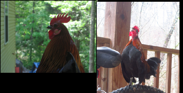 This was my Australorp cross, Jupiter. This is my White Faced Black Spanish, Pluto. The white on his face is still coming in as he's still under a year old. These were my Sebright cockerels, Mercury and Aeolus.