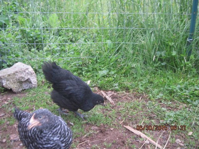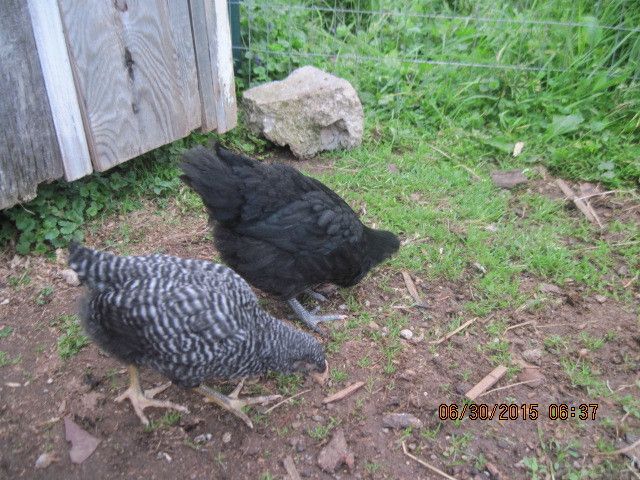 I have a question... My Black Australorps are nearly 7 weeks old, and their plumage is starting to take on that slight green tint already. Is this typical of BA's? When I got the two girls, (at a week old) they were mistaken for Barred Plymouth Rocks, which was what I was after, however these guys were practically jet black after about 2 weeks time, (their under bellies were lighter in colour as well as under their chin and down the neck) I guess I am just making sure that they are Black Australorps to begin with. I will get some current pics up today.