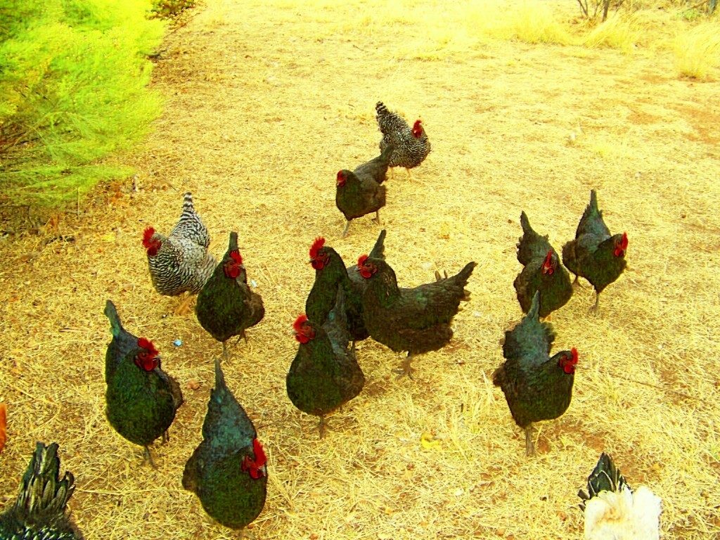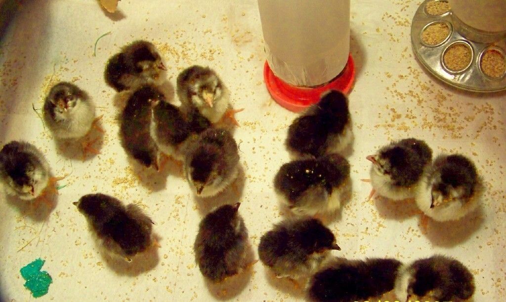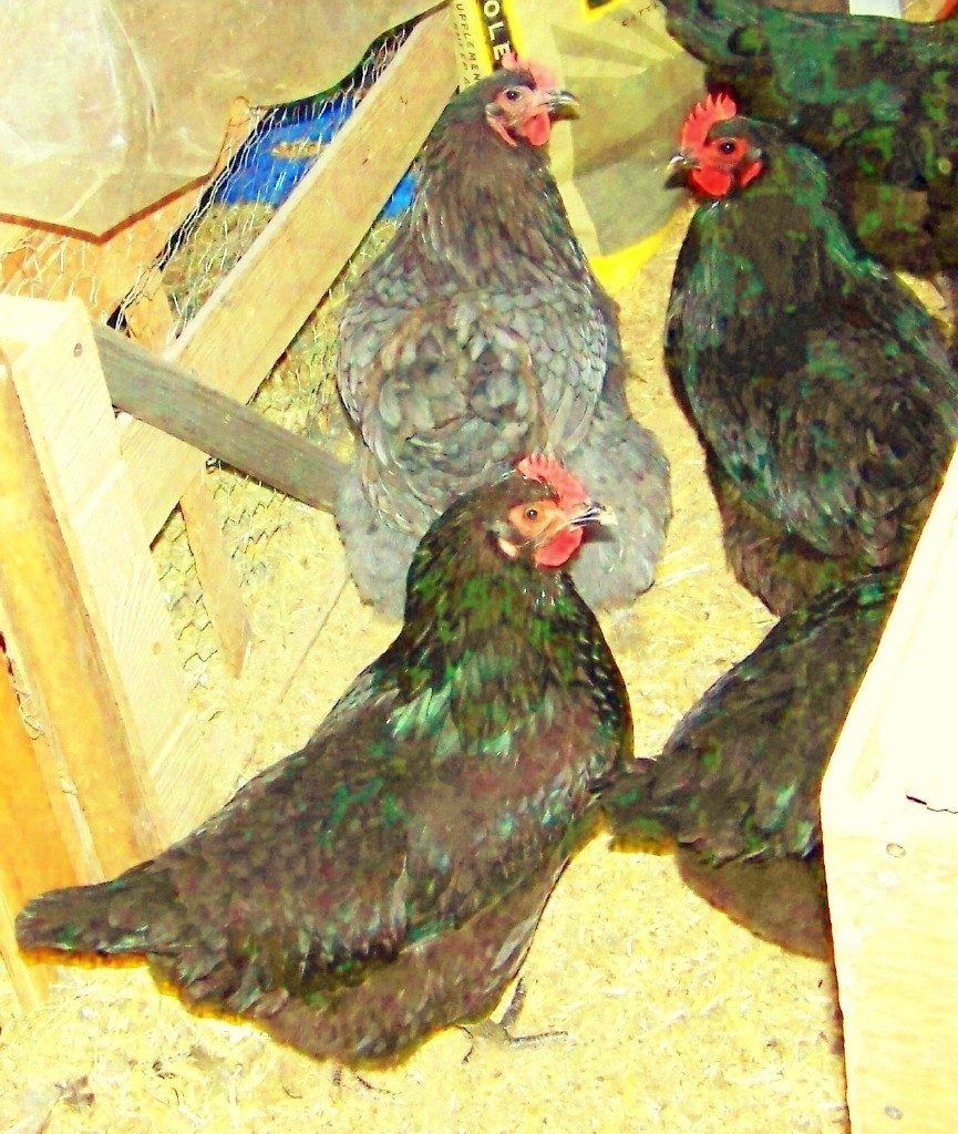 top pic are my 17 , 2 day old Aussies chicks Aug 21, 2015 & here are some of them today in the 2 nd pic taken on 3, 7, 2016 } at 6 months old & at bottom they are with our big blue Aussie hen all headed on their way to bed ,when they first started to lay eggs at 5 months old , they each were laying pullet size eggs then after the first weeks time they stopped laying pullet size eggs & started to lay giant size eggs , we could hardly believe it , but we sure do love our Aussies