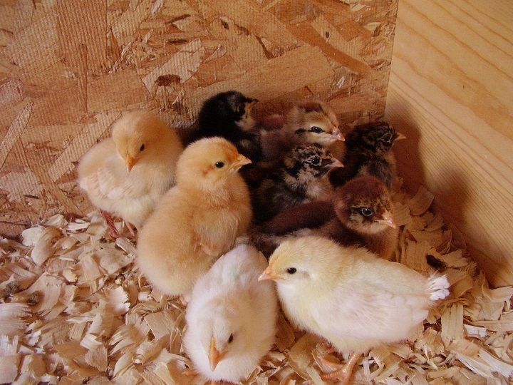 (From Left to Right) Ellie, Annie, and Sunni - (Easter Egger, White Leghorn, and Buff Orpington) 5 weeks old.