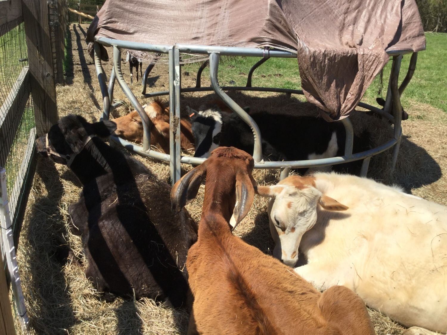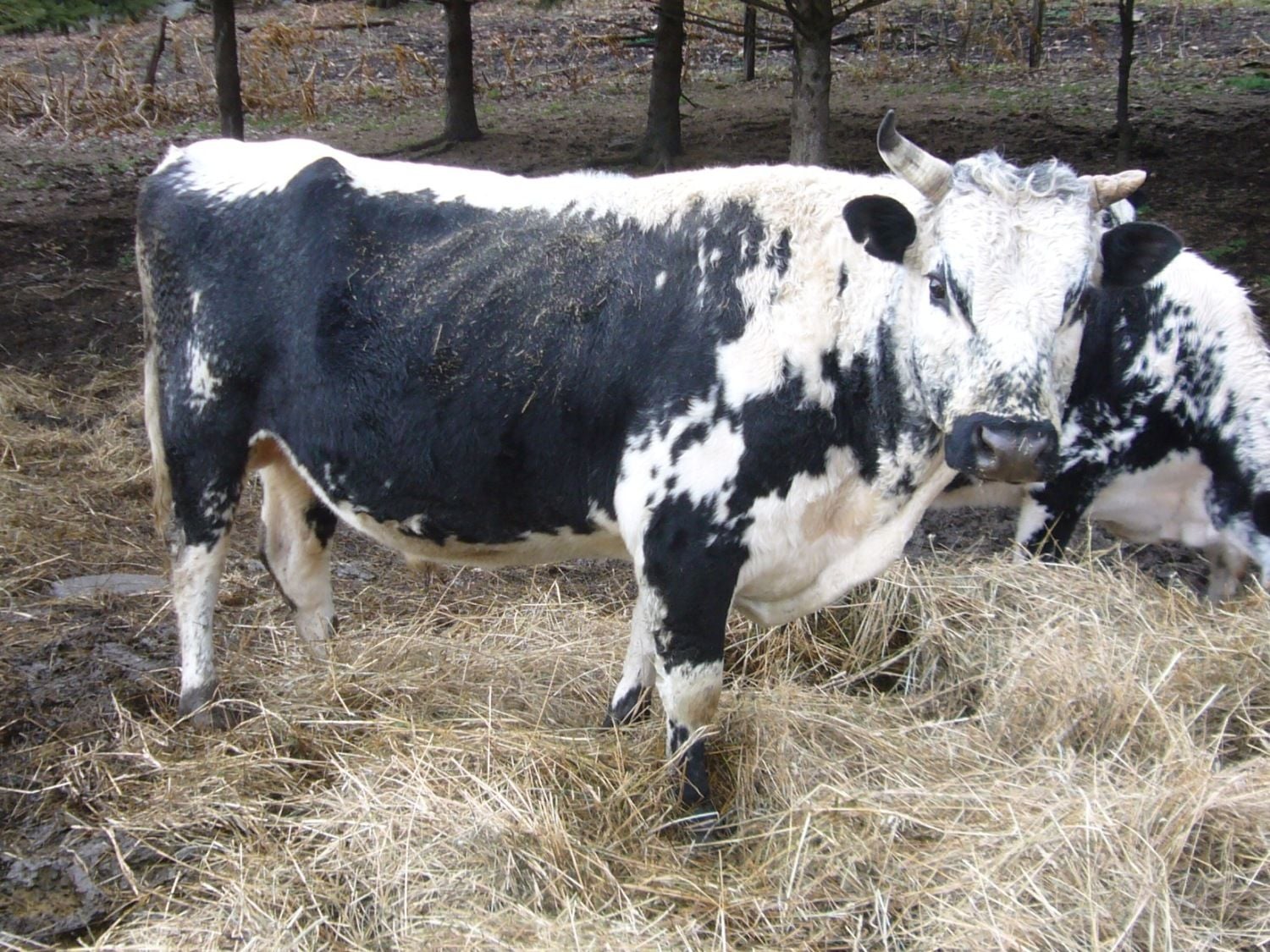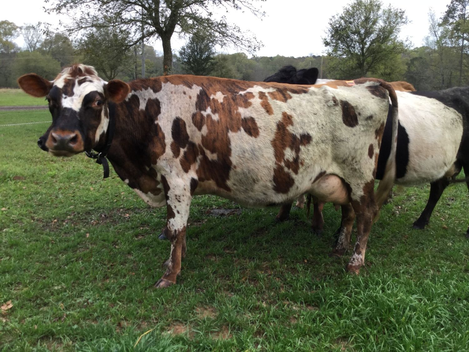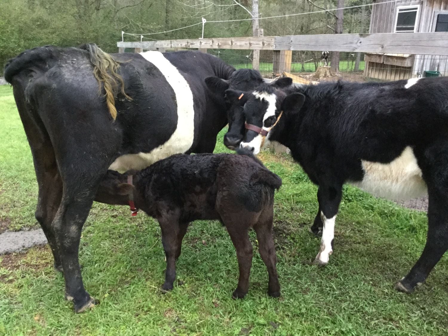 A big happy family. Left to right - Violet (Dutch Belted), Keatha and Violet's heifer from last sumer, Gertrude (Dutch Belted/Hereford).