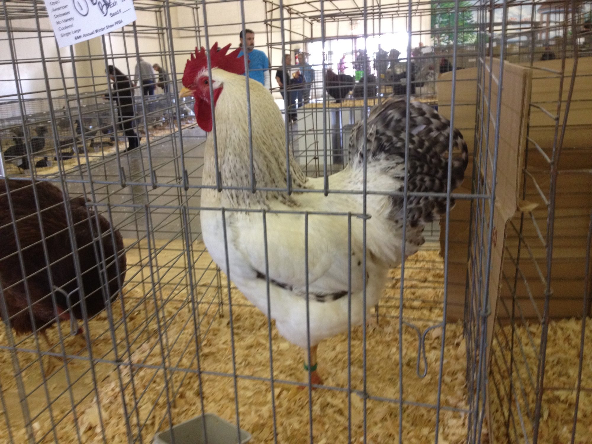 BV is Best of Variety... I think. But that doesn't make sense with Delawares because there's only one variety and BB already meant Best of Breed. Yes it's in the American Class. This is the first time I've taken photos with my new iPhone. They didn't come out very well, he did not have yellow coloring. I'm wondering who this bird belongs to? He was one of the few at this show that would pose for me, btw.What does the BV stand for? They are American Class, right? I assume BB is best of breed.............