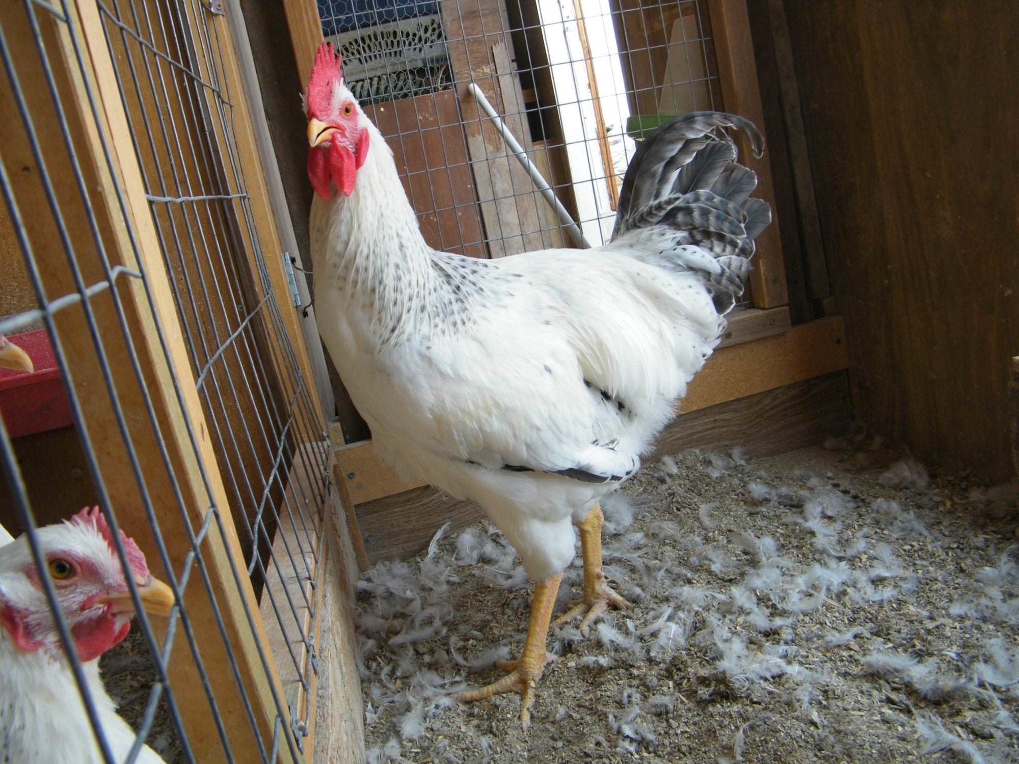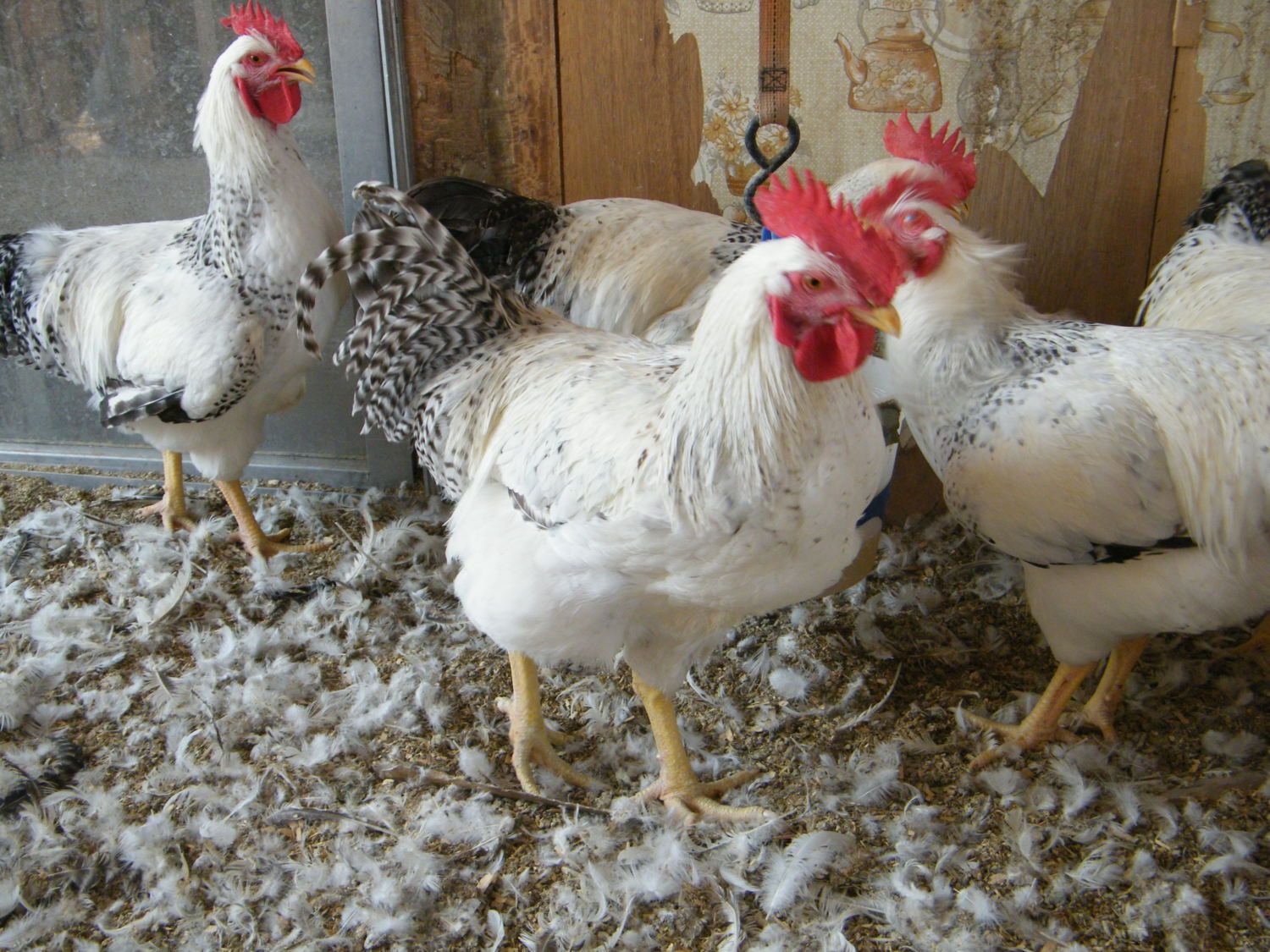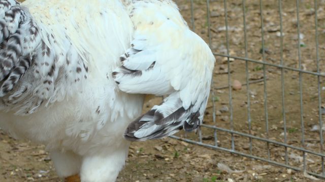 A split wing is when they don't grow an axial feather. You have 10 primaries (generally) and 10 secondaries (generally) and one little short feather in between those groups. Without it, its a split wing and generally the feathers don't lay in the proper order and they stick out. I didn't catch a pic of one walking away, maybe I'll try that tomorrow. They really stick out to the side. Also, I'll show you the one that I think has a crooked spine. He's just weird looking.