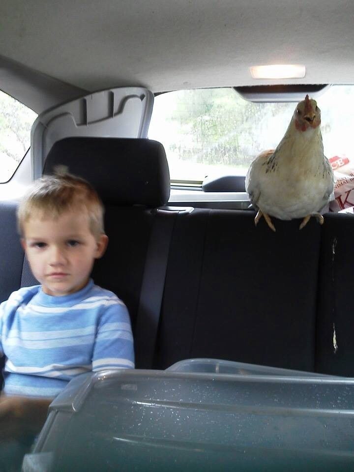 A good education for the youngsters - Your hen will nw be waiting for the rie every time the car starts lol