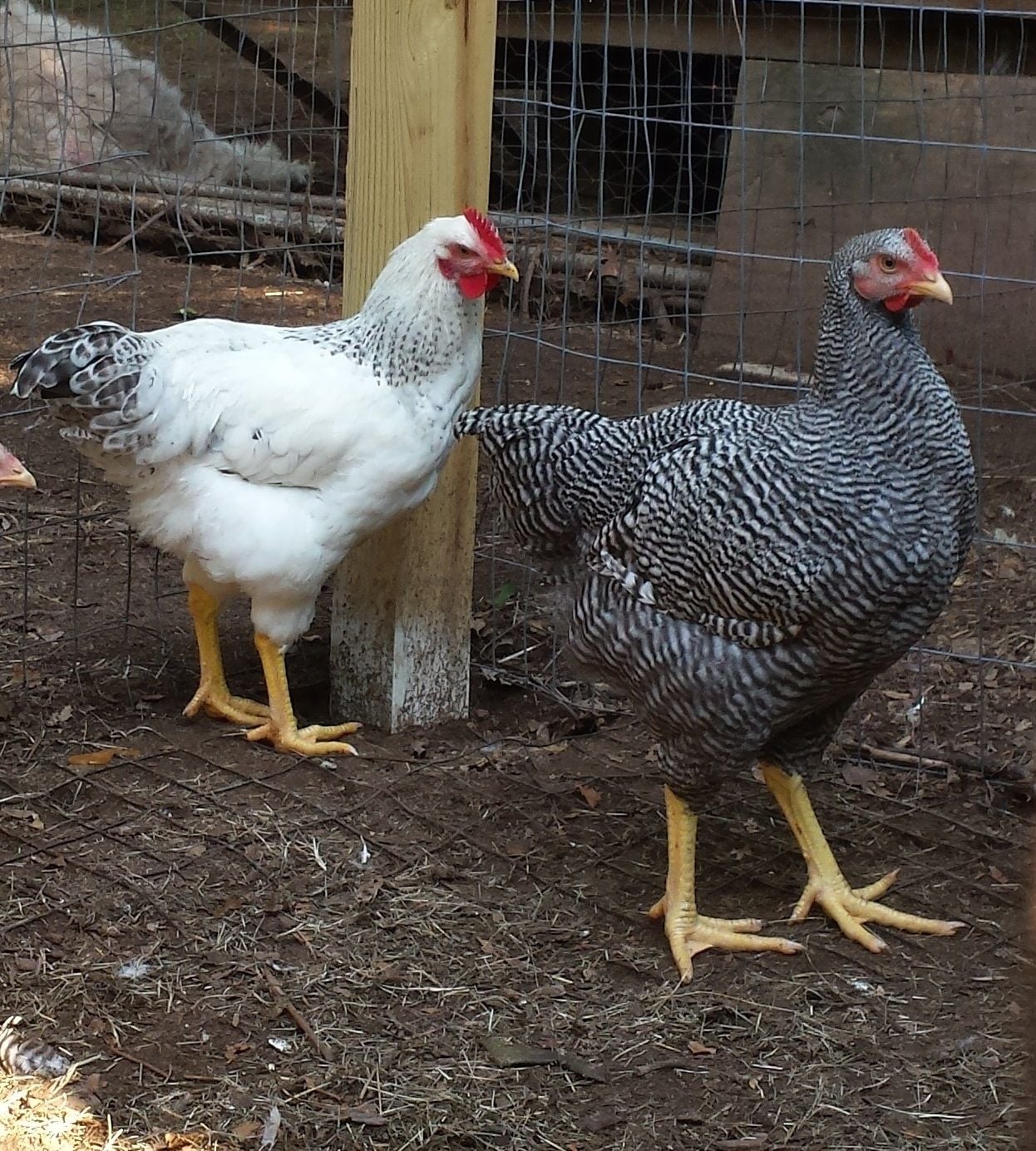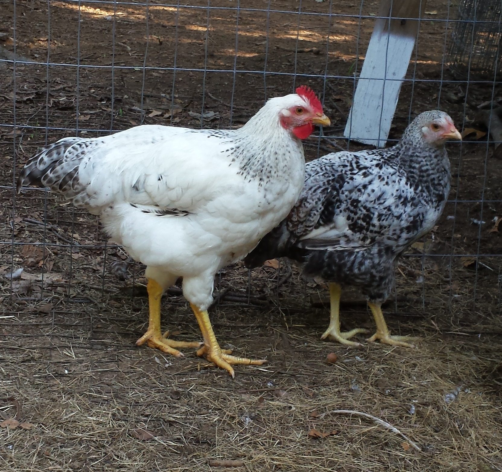 b) It came from an egg laid by a Delaware hen but she could have been covered by either a Delaware or a New Hampshire. As the chick grew there was more red leakage so I just assumed it was a Sex Link cockerel