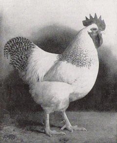 For some reason I lost the picture of the hen,. This is an old Schilling print. The best picture of the "ideal" Delaware that you will find. Notice the front end, the well rounded breast. Notice the depth, or length, of keel. See the topline, and see the bottom line. See the length, the tail, and the tail break. Notice the position of the legs, and the impression of distance between them. See the head. The comb, the beak, the eyes. All of the details. See the color and the placement of the color. Where it is, and where it is not. The color of the legs is a rich golden yellow. Perhaps with an orange stripe down the sides. See the position of the wing. Up tight, held tight, and level.