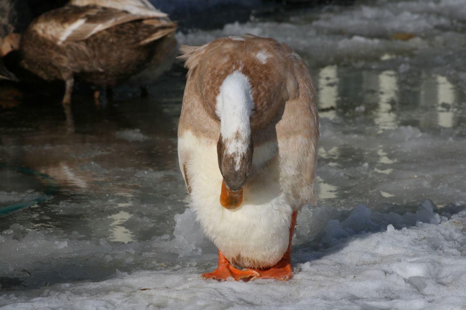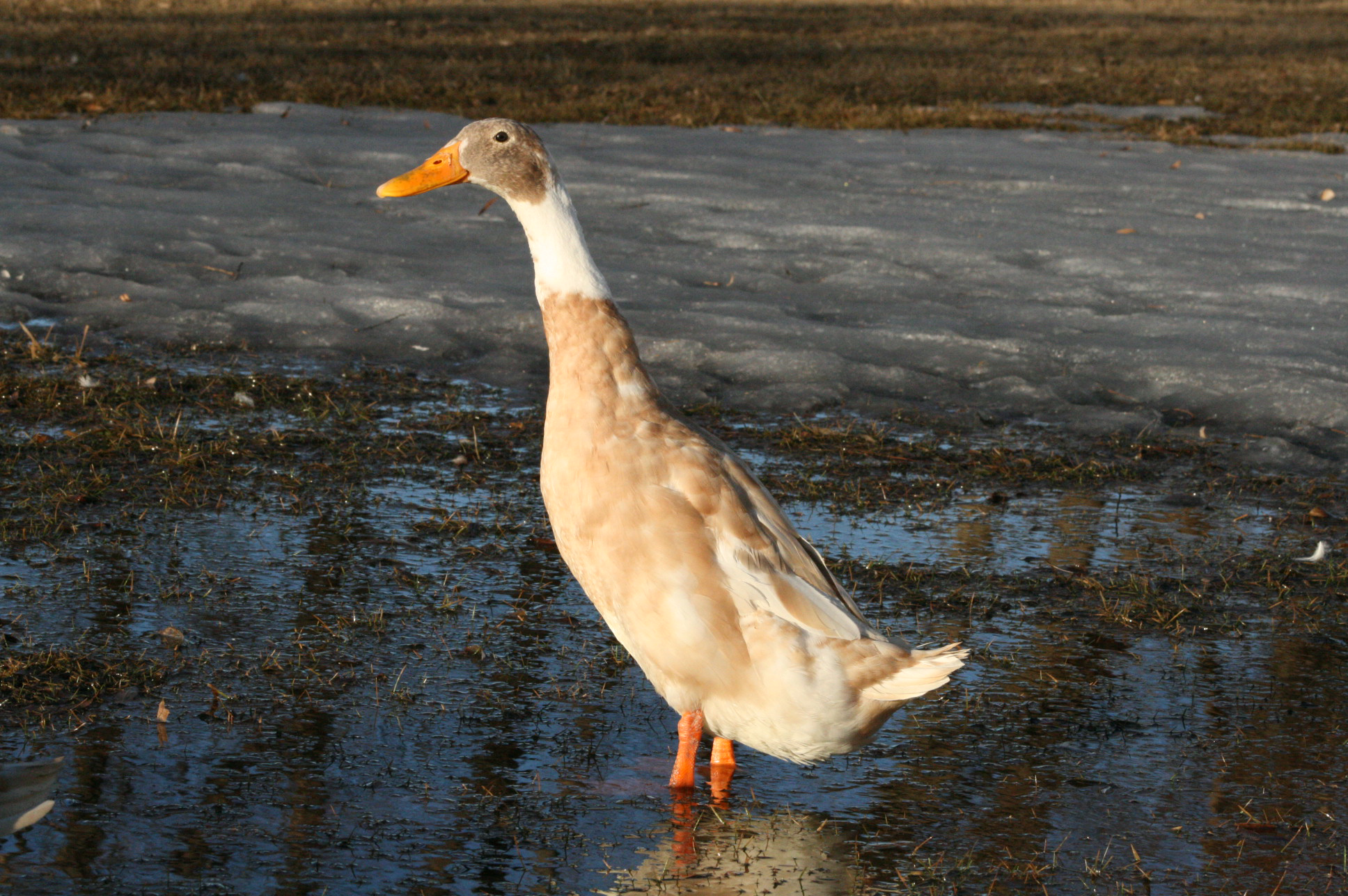 Oliver, our Fawn and White Indian Runner drake. He is the top drake, and probably the smartest.