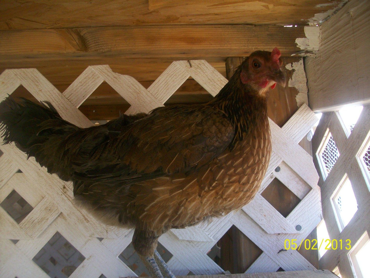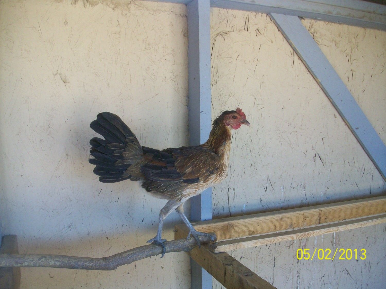 Just guessing right off though, I'd say she probably carries a little hatch blood. Looks like some of the very old Right nose hatch stuff we had (which were just Rubles), but can't be certain as I have a hen that is a yard hatch from a 3/4 Stewart 1/4 Gilmore hatch and a 7/8 Morgan Whitehackle and 1/8th Shelton roundhead hen who came looking fairly similar to your hen except for having a single comb. Also had some Brassy back albanies X Lacy roundhead's come blue legged and looking fairly close to your hen except they had some type of black penciling throughout the feathers in some spots. I guess the blue legs came from that lacy line, might of carried some hatch; not entirely sure as they didn't last long here and were replaced by a better strain of lacy.
