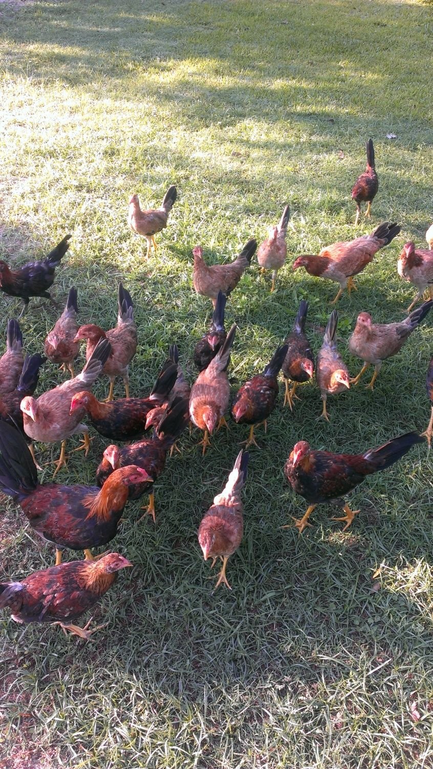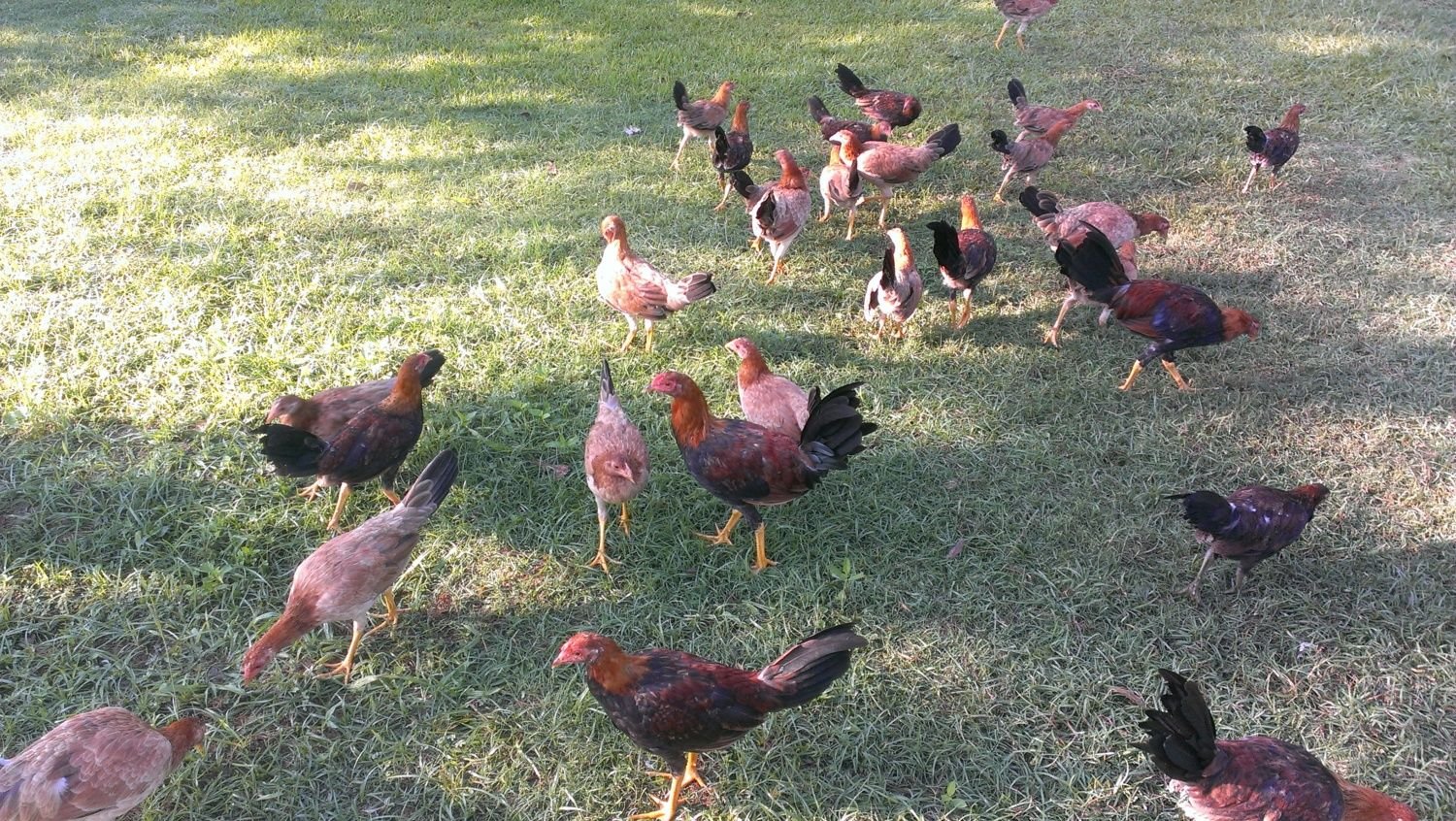 Now that's my version of heaven... Free range gamefowl frolicking about in the yard.