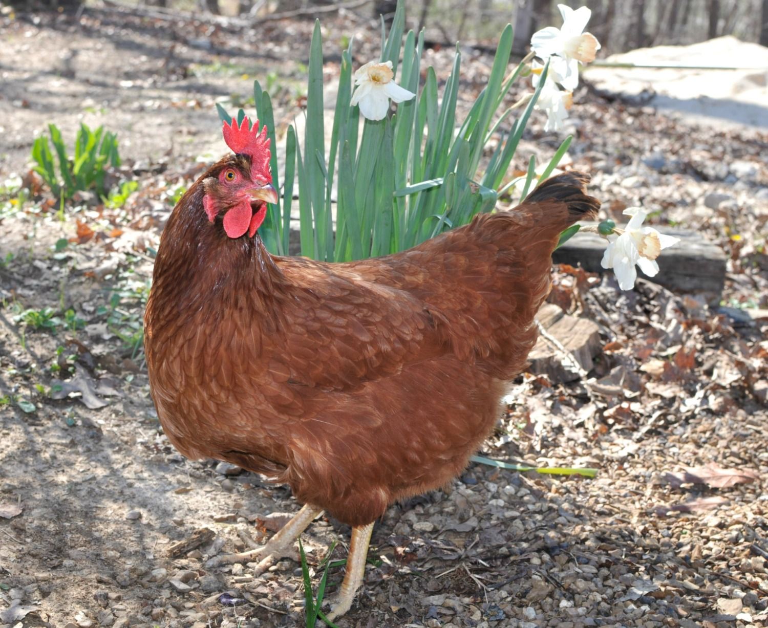 This is Cluck our oldest hen. She is four years old and we think she is a bovan goldline but we are not sure because we were not told her breed when we got her as a chick