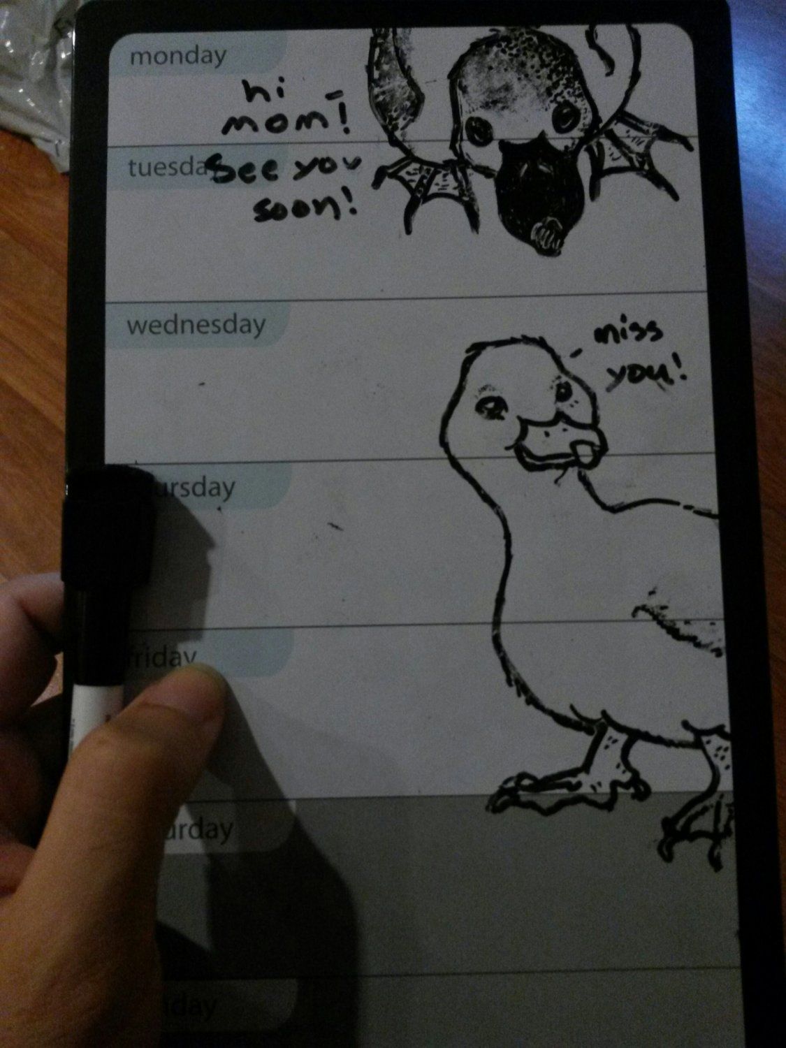 While I was in the hospital I got bored and lonely, but I had a little whiteboard for communicating to the nurses and I doodled my lil' babies to keep me company during the long night. Hils took a photo of it, isn't that sweet?