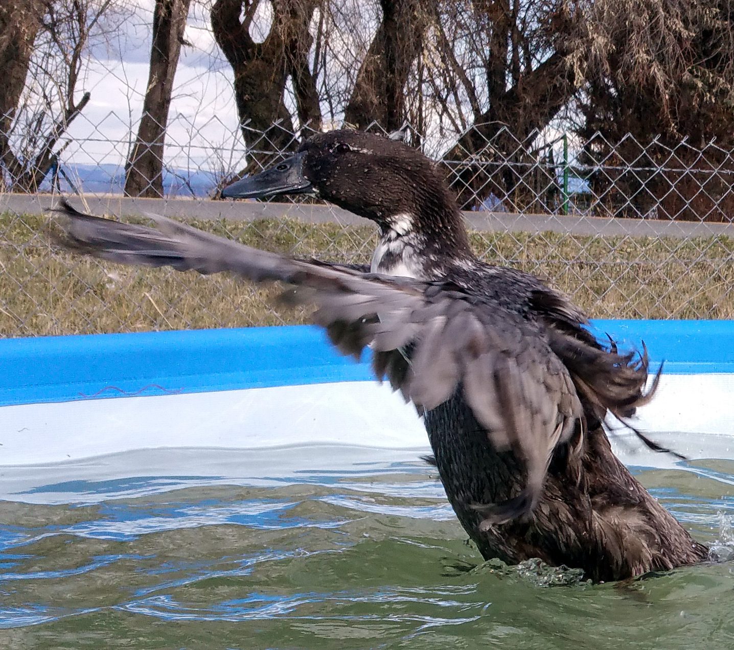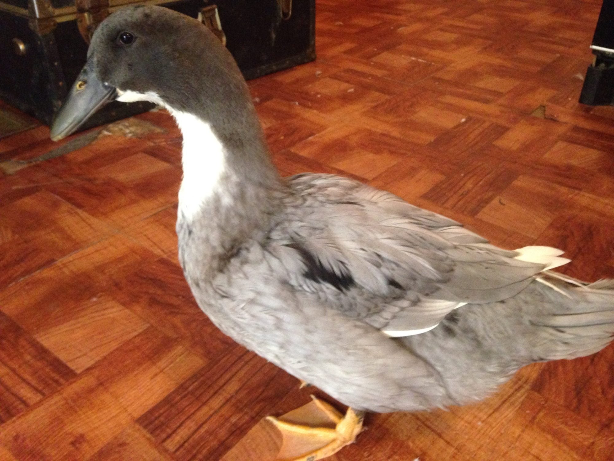 OMG! I thought she was a Blue SwedishLol. Pictures can be deceiving.... She's a big girl!! Momma is a pekin and daddy is saxony... She got her mommas backside!!!