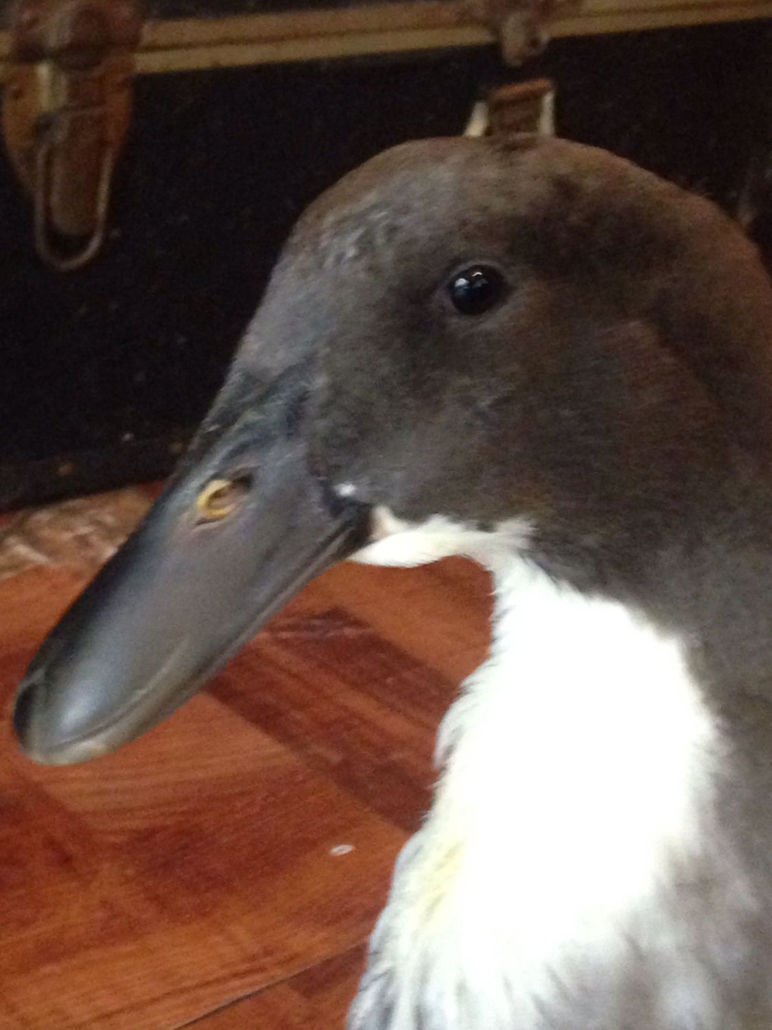 She's got a pretty big body compared to her head and neck. She weighed in at 6 lbs, 2oz on her last weigh in. If yours is half Pekin half Saxony, I would guess she is quite a bit more than that. You totally fooled me