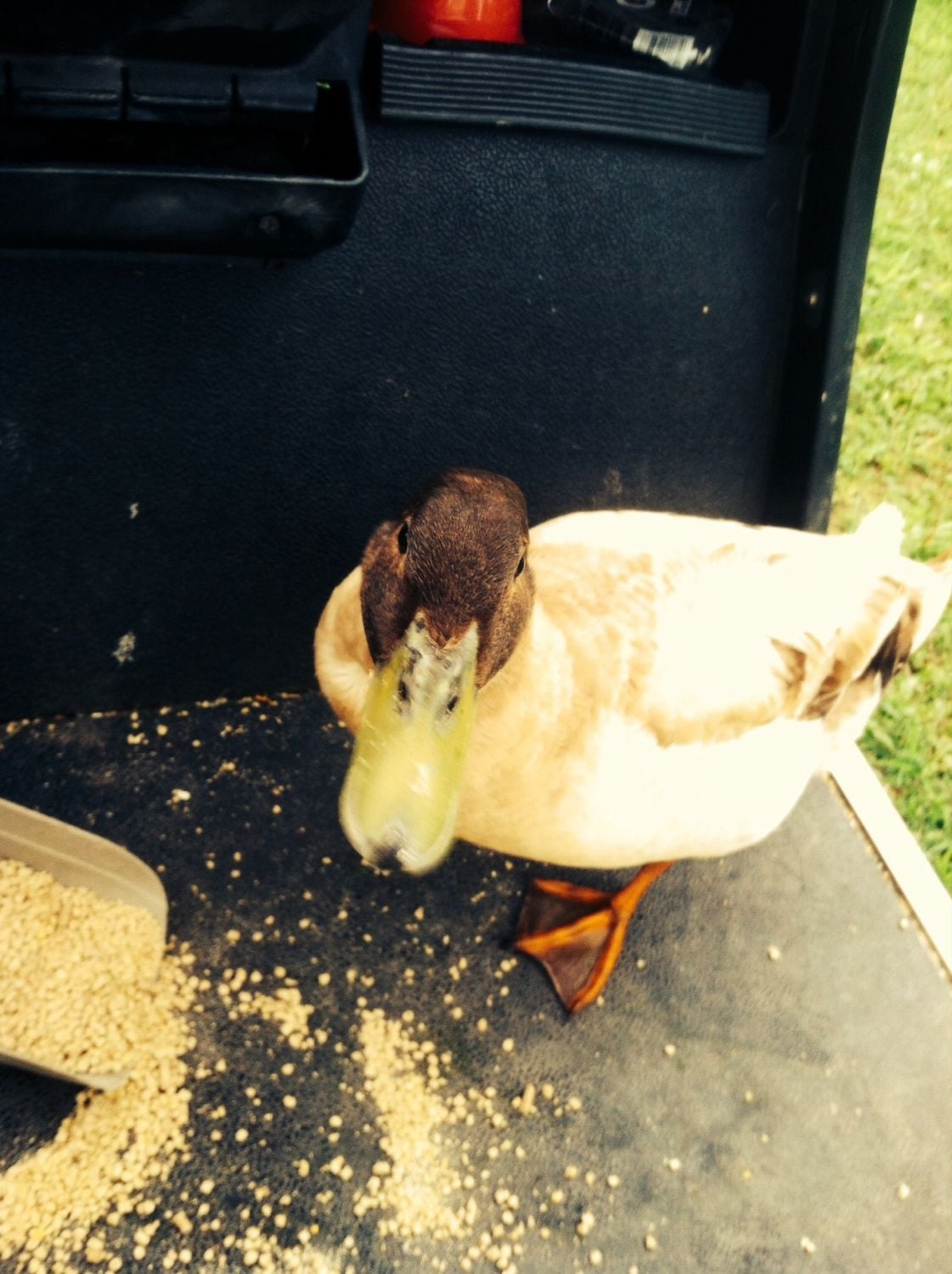 Scovy Momma lives only about an hour or so away from my parents' place, and since I know she's great with house ducks I asked her to take them in, and she agreed. I will never stop being beyond grateful for her help. I know it's a pretty huge favor to ask of anyone. And if my life blows up in CA like it did here in WA, I cannot in good conscience put them through the trauma of another move. I need to be sure I can give a proper home for my babies.