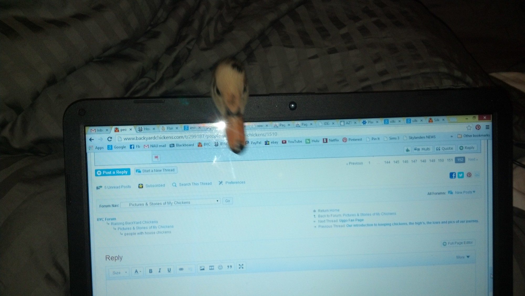They must like the warmth! But I can't possibly compete with a laptop lol thankfully these ducklings also have each other so I'm not quite as tied to them 24/7. They sleep in a basket next to my bed and seem quite content. I bought a couple baby doll cribs and I want to turn them into places for the duckies to sleep at night!