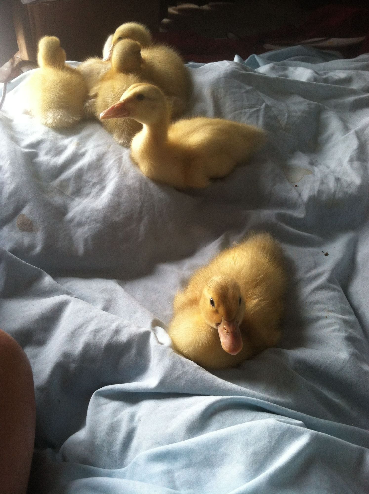Best moment of the day out was when my daughter pulled into the bank and a guy headed into the car next to us. It took him a second to register that I had a lap full of ducklings as he passed, but when he realized what they were he did the most spectacular double take I have ever seen. We didn't stop laughing for a while after that....