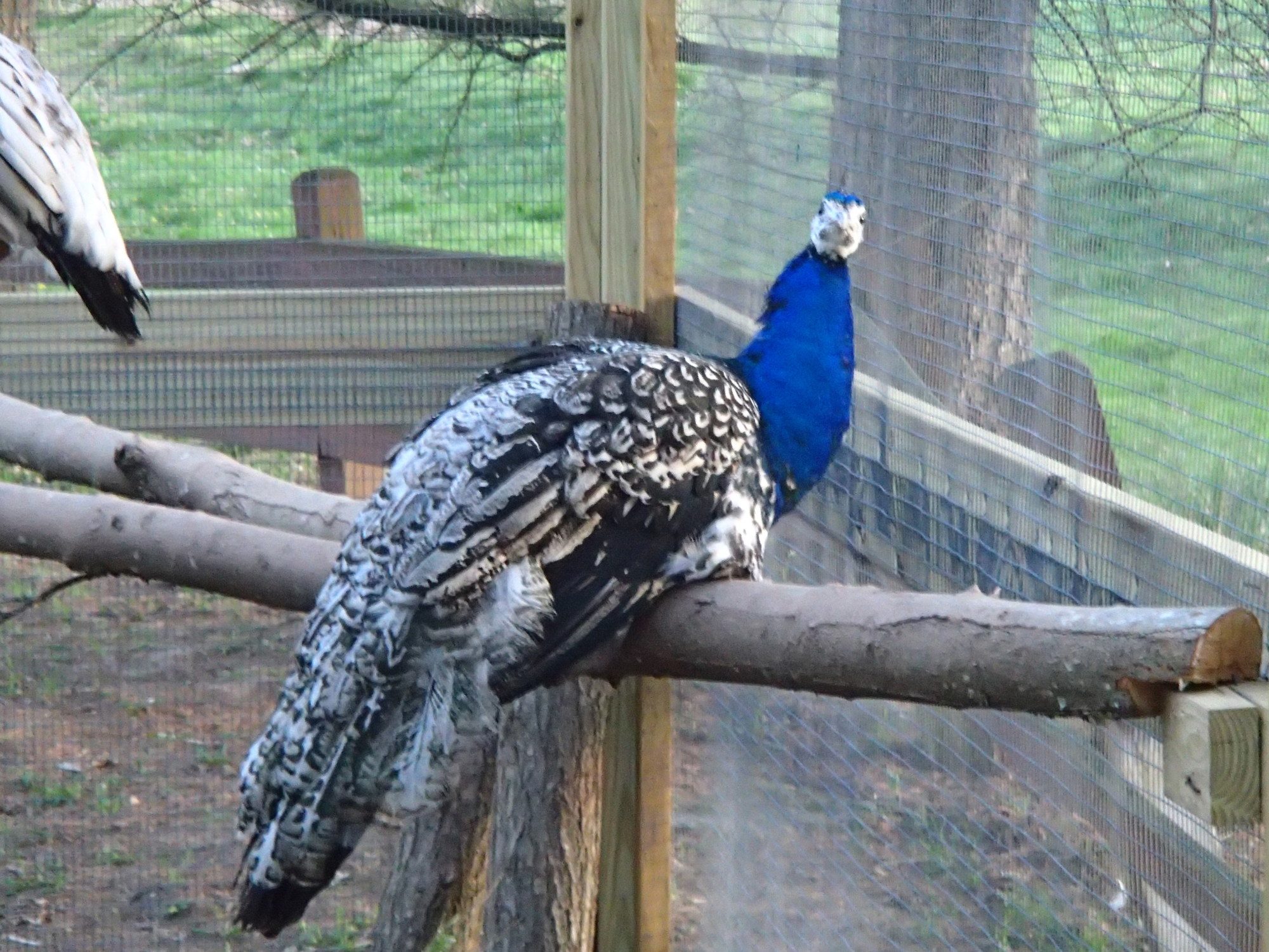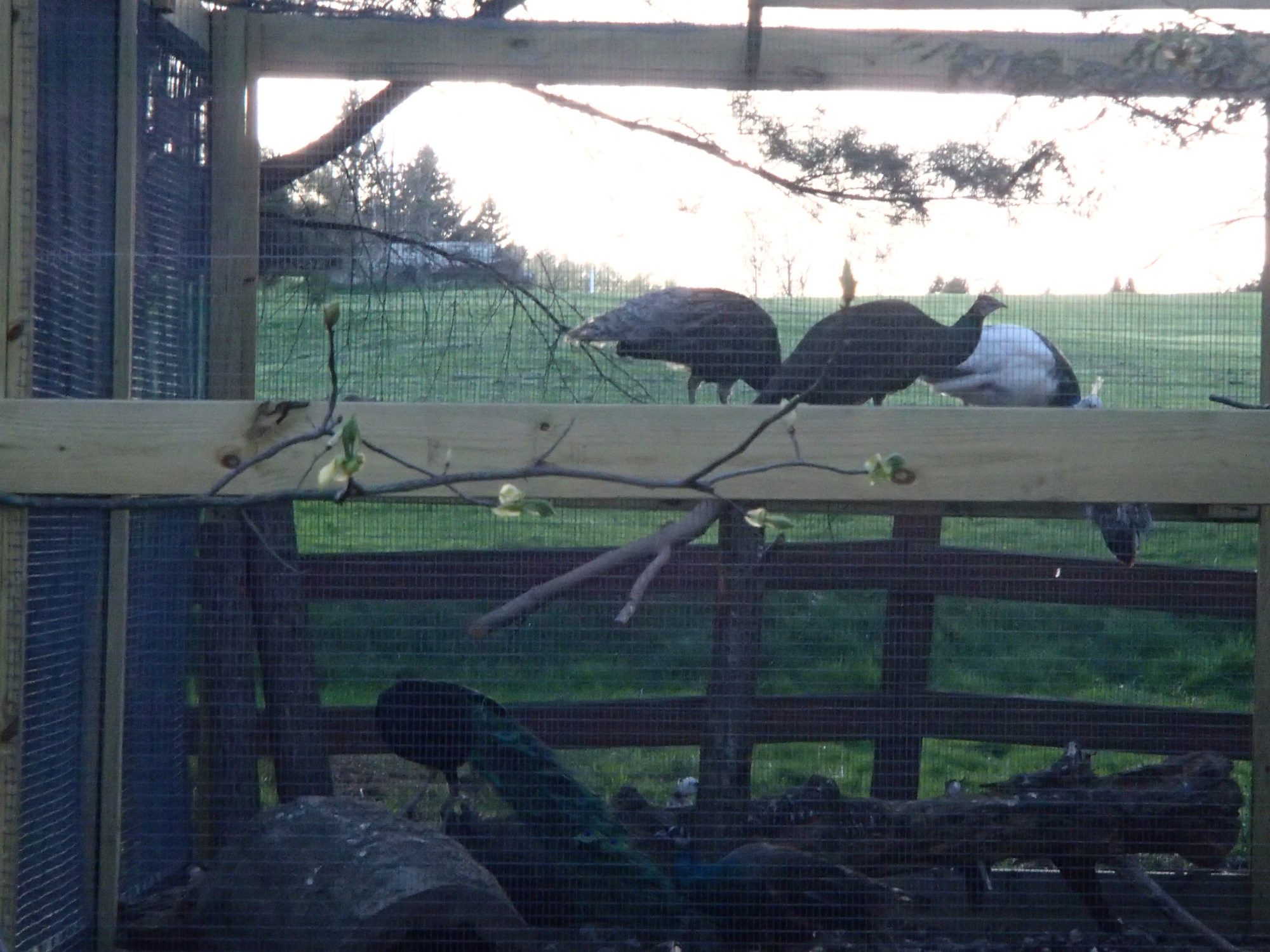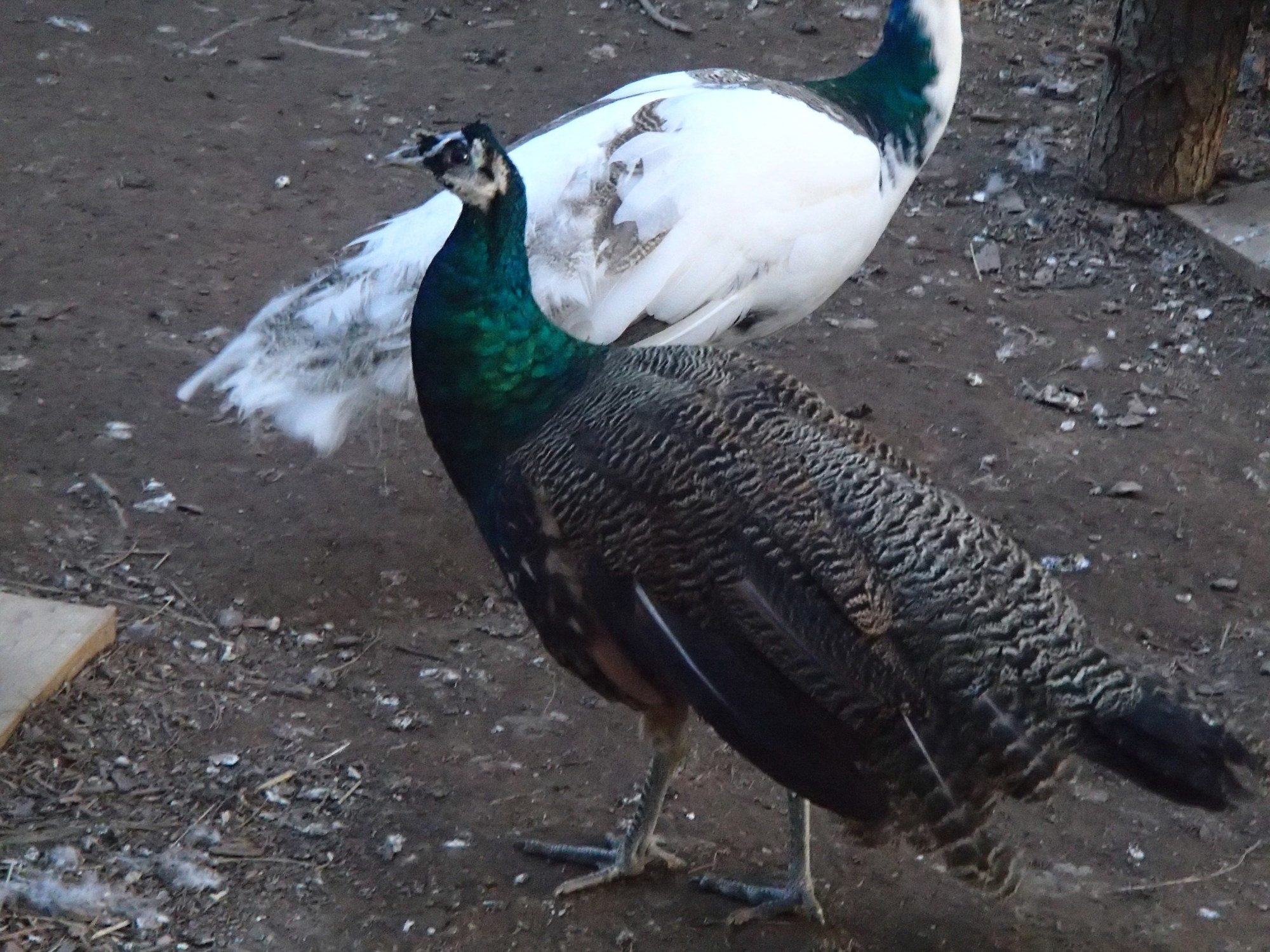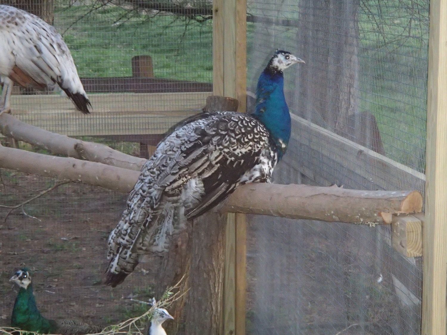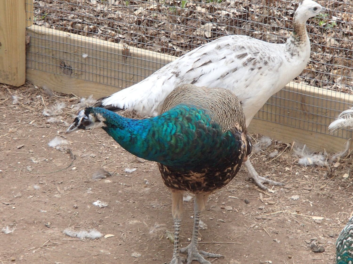 Thought I would ask the peacock experts what this boy's color maybe. I know he is not an average india blue because his color is different on his wings and his tail is more purple than green in comparison to my india blue male. He showed up this morning hanging with my two free roaming boys. Seems to be about 2.5 - 3 years old. His spurs are just growing in like my india blue boy. I am pretty sure he was abandoned at our house. He isn't afraid of people and has been openly welcomed by our boys. If he decides to stick around he is more then welcome to have a permanent home here. I'm sure my dad will be tickled pink to have another peacock lol.